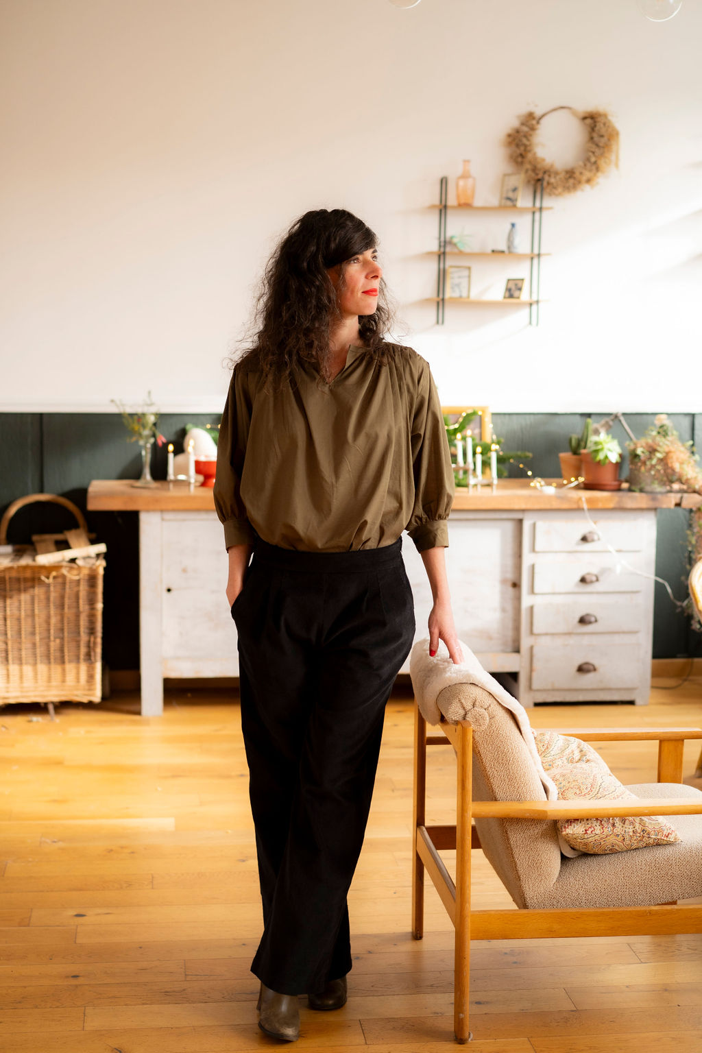 Avec ce kit couture, réalisez Swann, notre pantalon au bassin ajusté et à la jambe large. Swann, c’est le pantalon facile à associer à toutes sortes de pièces de haut : chemisier, blouse, tee-shirt… tout matche ! Pareil pour les chaussures ! Que vous aimiez les talons ou encore les baskets, tout s’accordera facilement avec notre nouveau pantalon. Swann, c’est une coupe élégante, facile à porter et combiner. Le tissu sélectionné contient un peu d’élasthanne, ce qui rend ce modèle confortable : les mouvements ne sont pas entravés. Une pièce indispensable dans un vestiaire, parfaite aussi bien au quotidien que pour des évènements demandant une tenue quelque peu habillée.