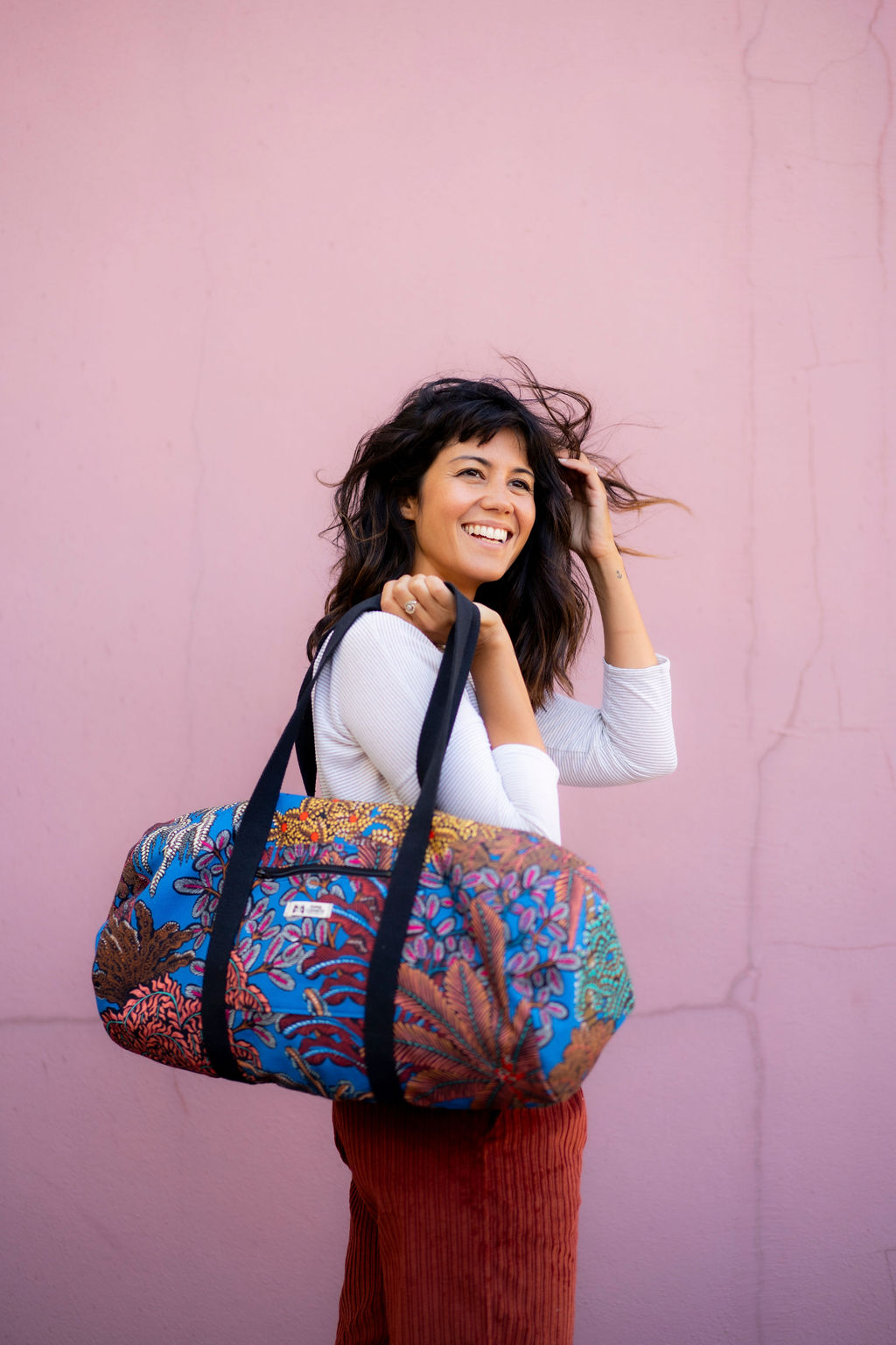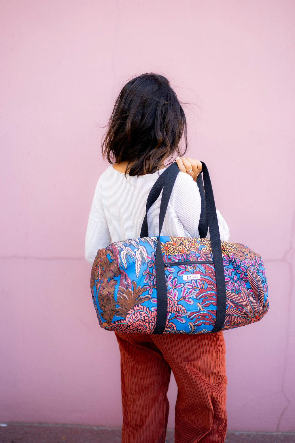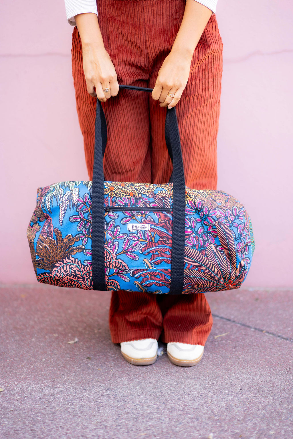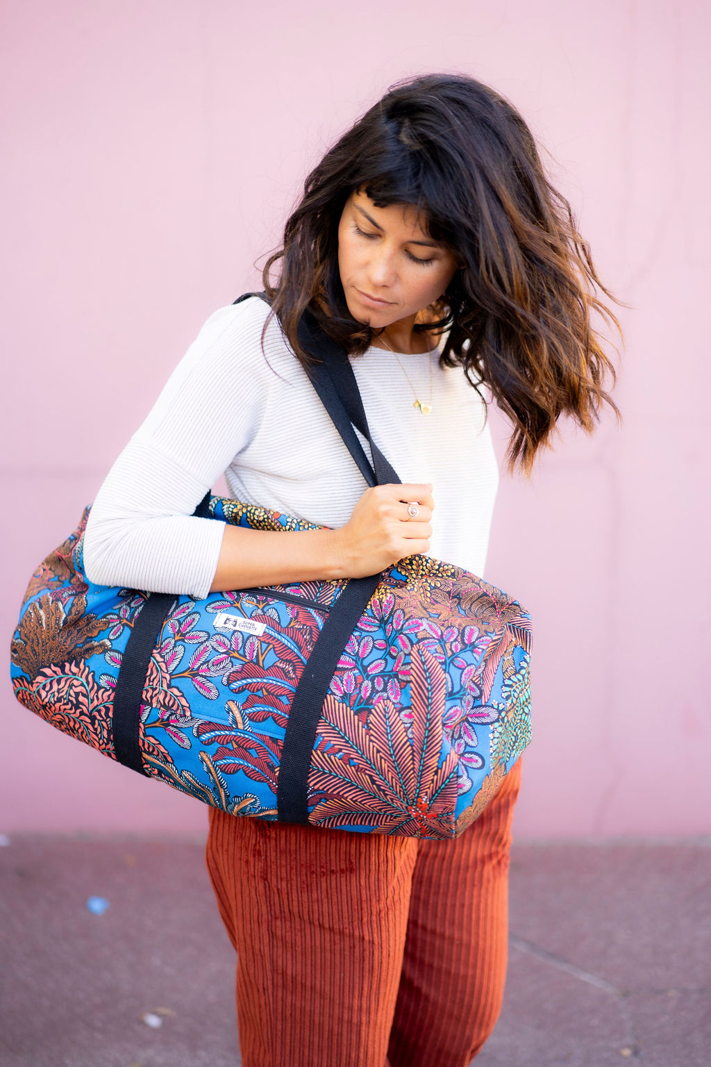 Avec ce kit, vous réaliserez un sac polochon Guillaume : le format généreux de ce sac vous permettra d’emporter le nécessaire pour une nuit en escapade ou encore vos affaires de sport, de yoga, de danse. Vous y logerez facilement une tenue complète et une trousse de toilette, ou encore votre ensemble de sport et une paire de baskets. Les matériaux choisis lui confèrent tenue et solidité, et l’imprimé toute son originalité. Ce nouveau sac vous suivra partout ! Porté à la main ou à l’épaule, à votre guise.
