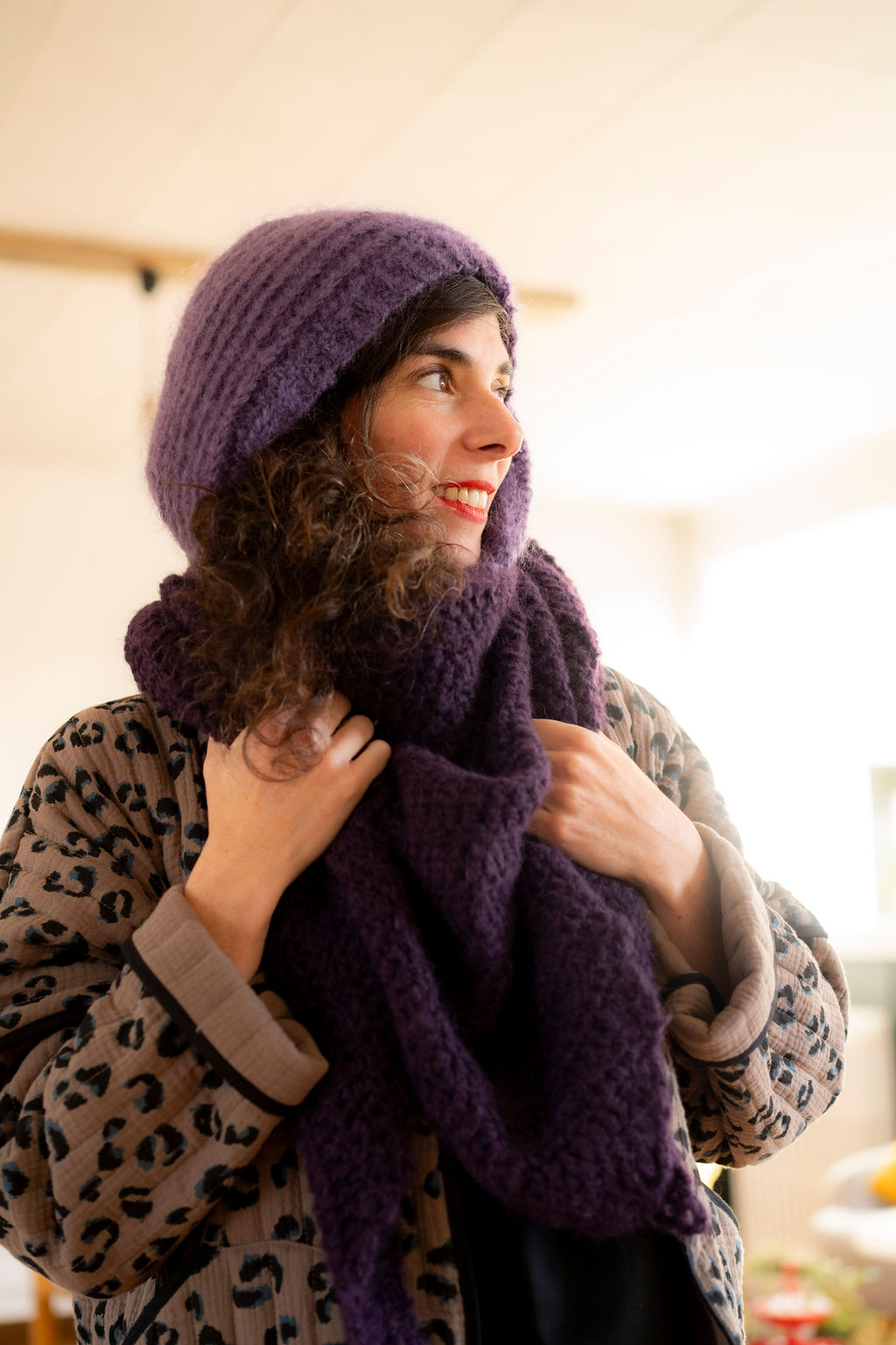 Côté réalisation, pas de difficulté particulière, seuls l’assemblage et le montage de la petite bordure en côtes autour du visage demandent un peu de minutie et de régularité.