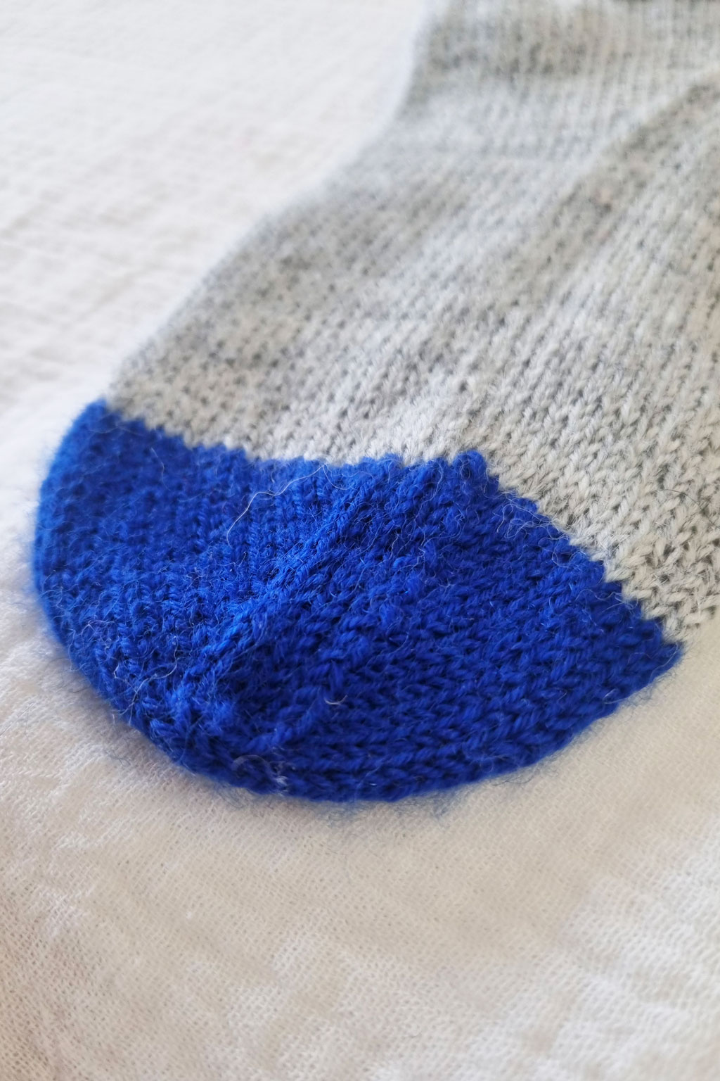 Nous vous conseillons de prendre des aiguilles circulaires 2,5 en 80 cm (pour les extrémités : bord côte, talon et pointe) et des aiguilles 3 en 23 cm pour le corps de la chaussette.