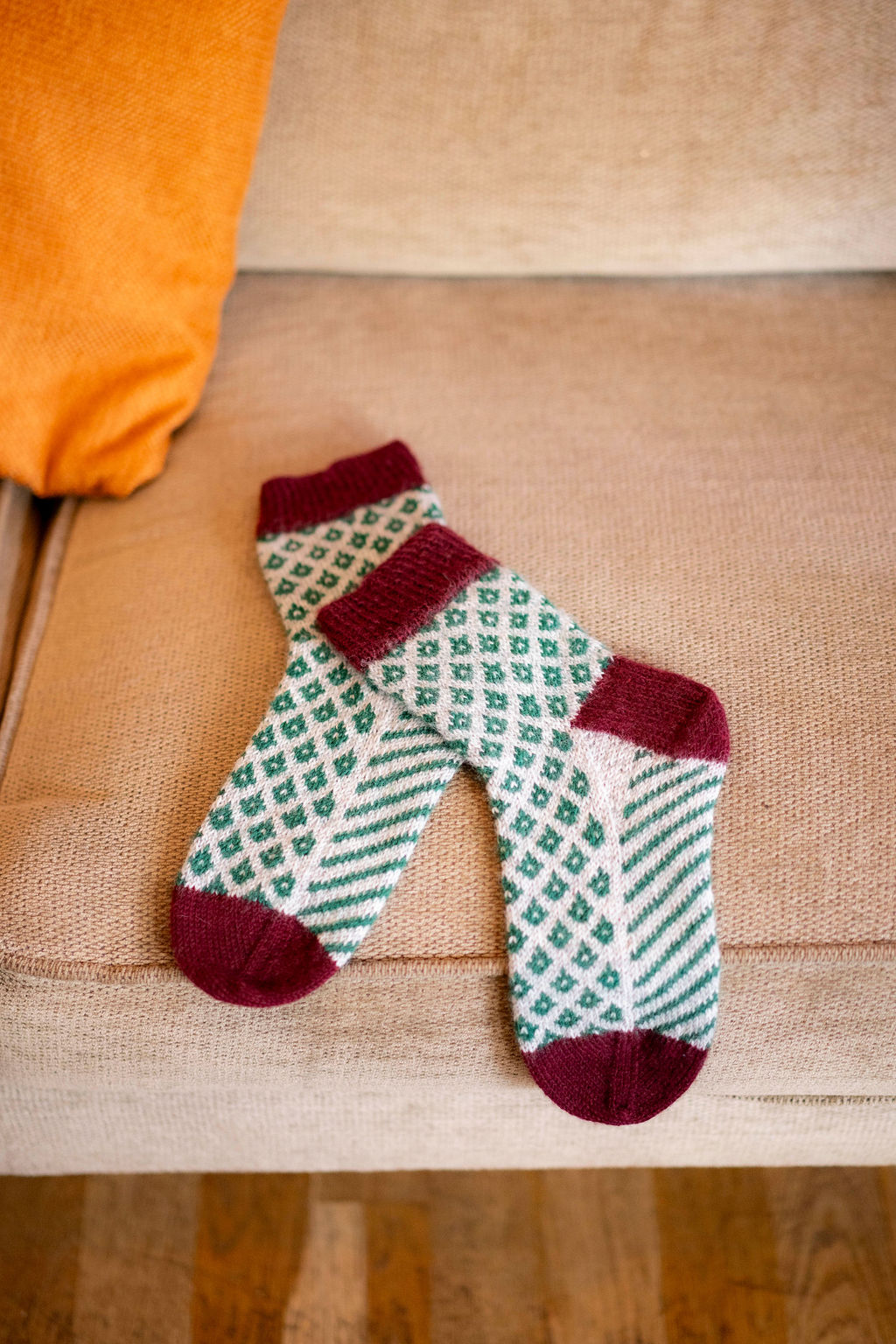 Tricotez votre paire de chaussettes aux motifs jacquard Suzette ! Modèle inédit créé par la talentueuse Emma Ducher, designer tricot à Lyon, pour Super Chouette. À l’atelier, les températures baissant, nous avions une envie furieuse de chaussettes jacquard, et Emma a comblé notre envie avec ce modèle aux deux motifs, un pour la jambe et le dessus du pied, et un second pour la semelle!