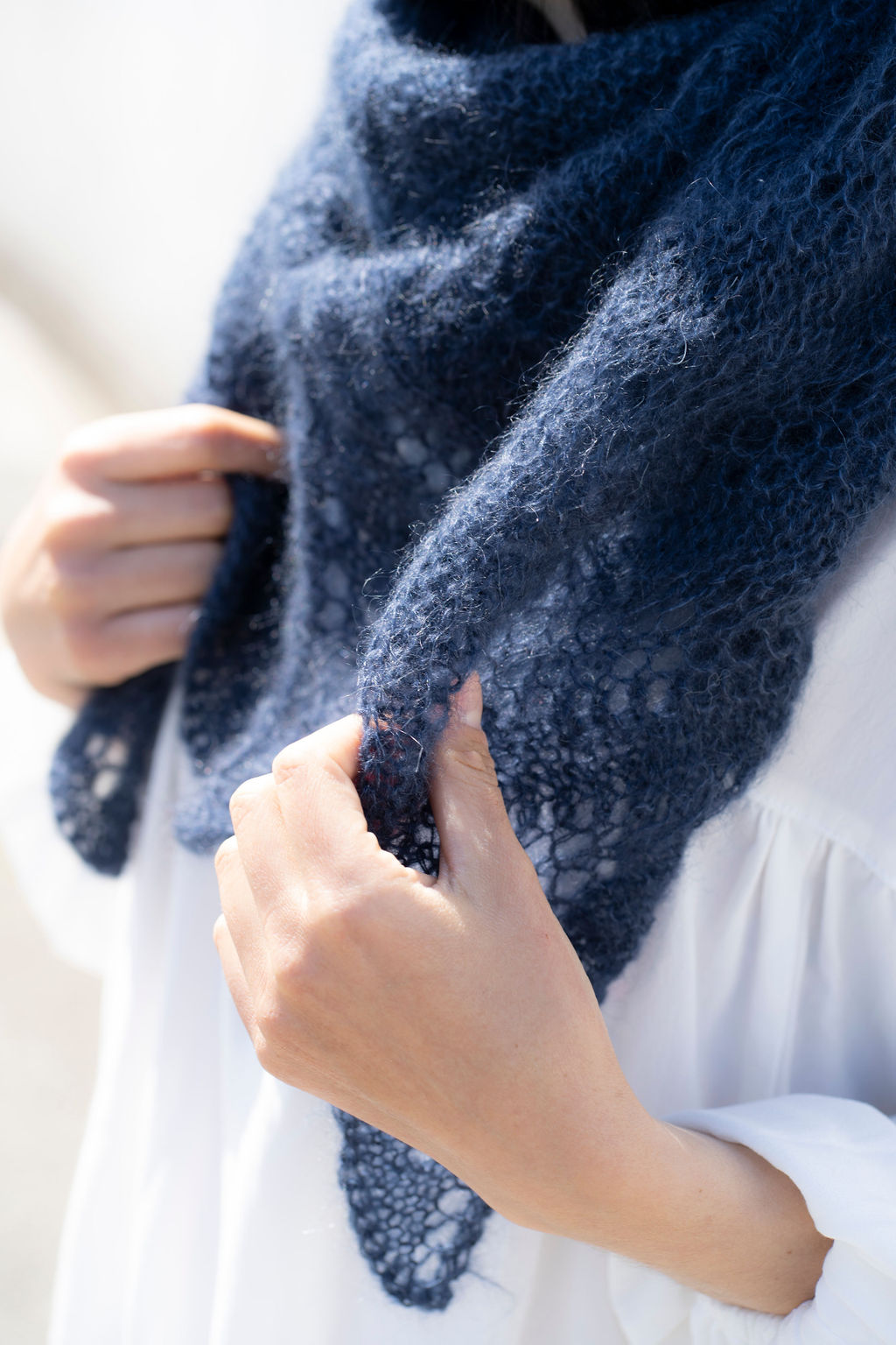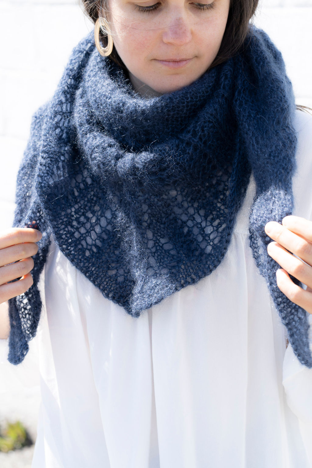 Lors de sa réalisation, vous associerez une torsade centrale et un point dentelle dans un beau fil haut de gamme mohair et soie pour un rendu chaud et léger. Le modèle vous permet d’obtenir une pointe très souple dans laquelle il fait bon s’y blottir quand les temps se rafraîchissent.