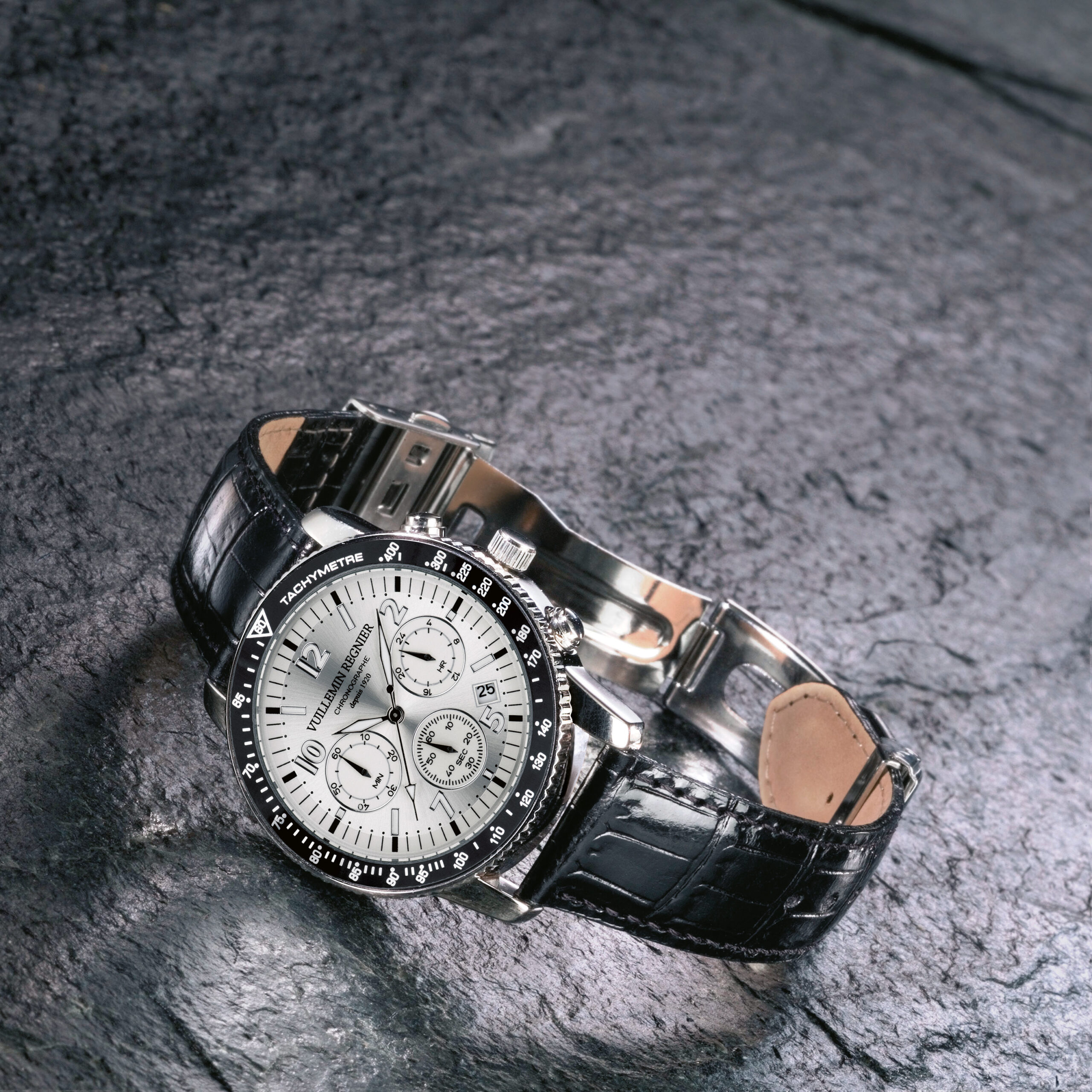 Fruit du travail et de l’exigence d’un expert, cette montre est un objet rare réservé aux connaisseurs. L’équilibre des matières raffinées : alliage de métaux précieux et noblesse du cuir, sont réunis en une subtile association aux finitions parfaites.