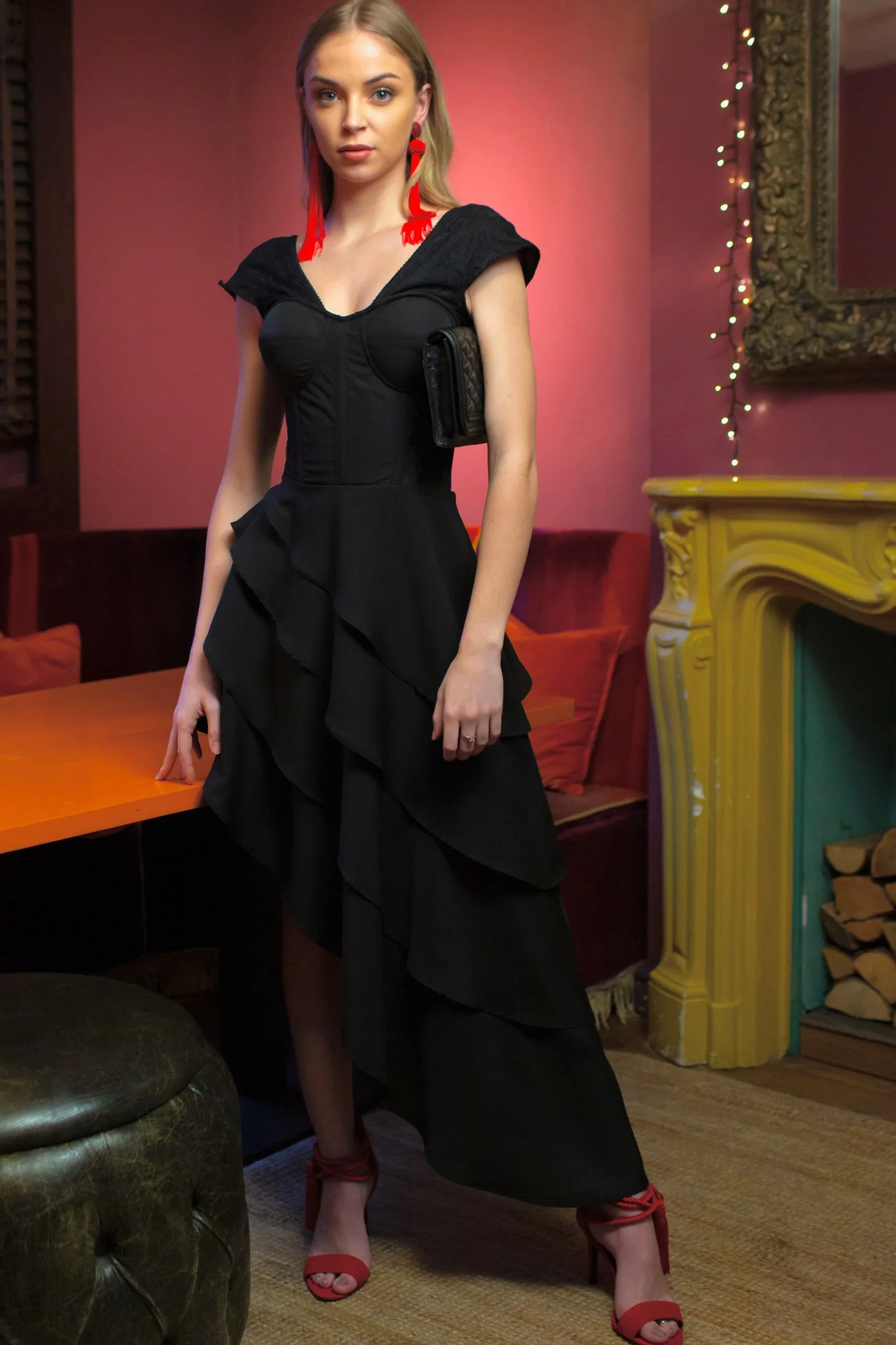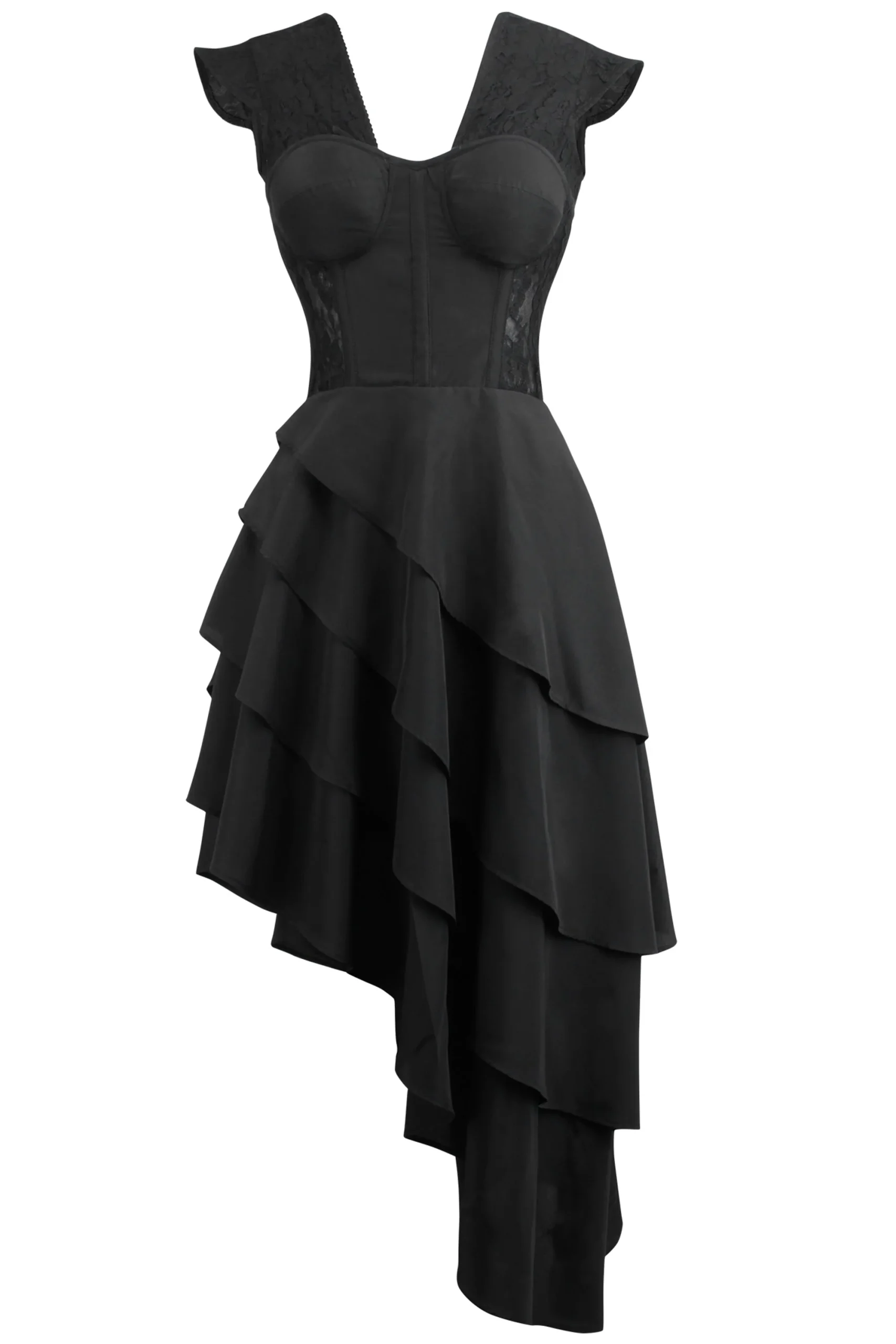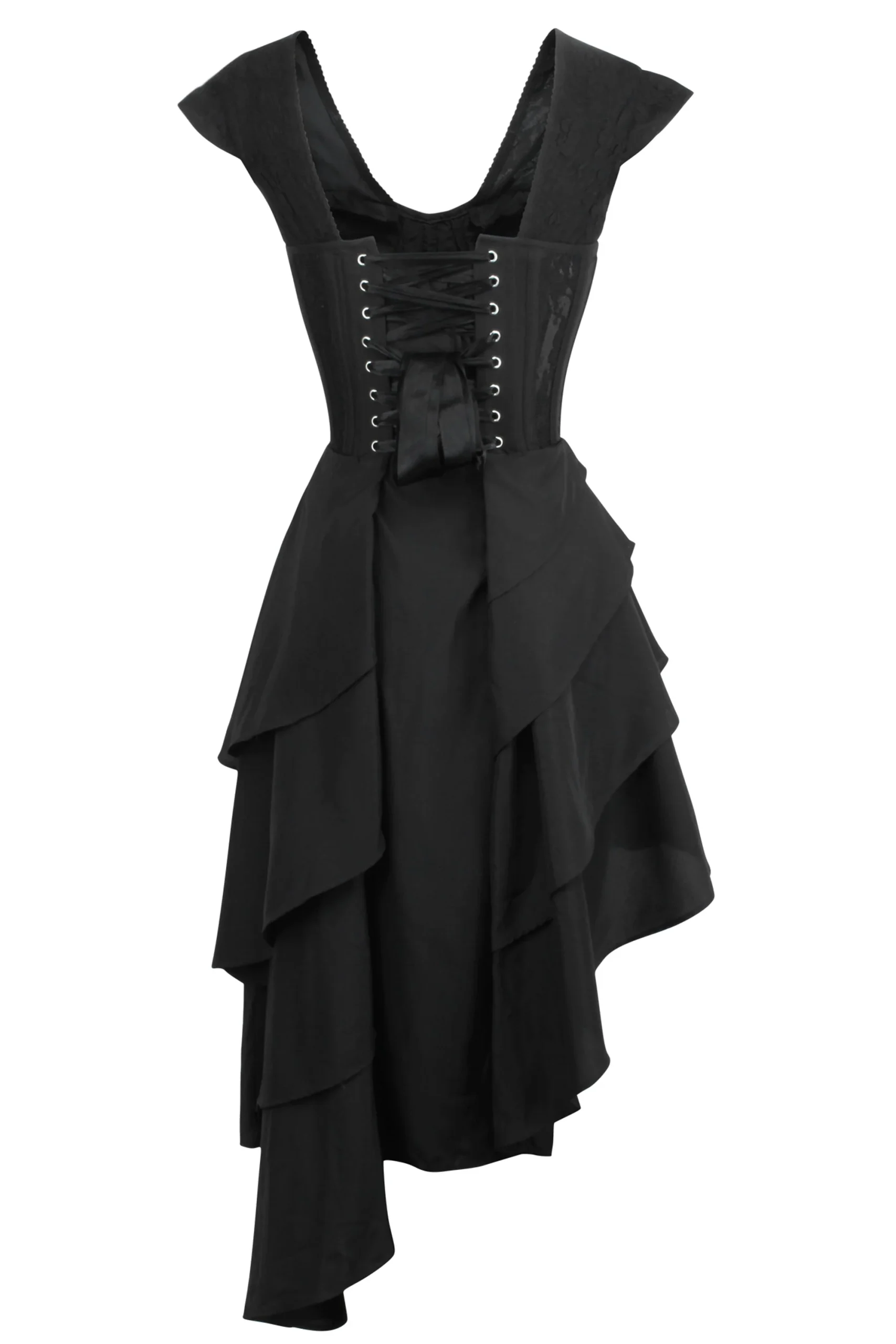 Une robe de soirée noire avec un corset intégral est la hauteur du glamour et nous pensons que vous allez adorer celle-ci. Le corset overbust offre une réduction de taille allant jusqu’à quatre », ou moins si vous préférez. Les bretelles larges offrent soutien et couverture tandis qu’une jupe cascade fantaisiste se drape doucement vers le sol. Les panneaux latéraux en dentelle rehaussent l’ambiance du glamour sophistiqué.