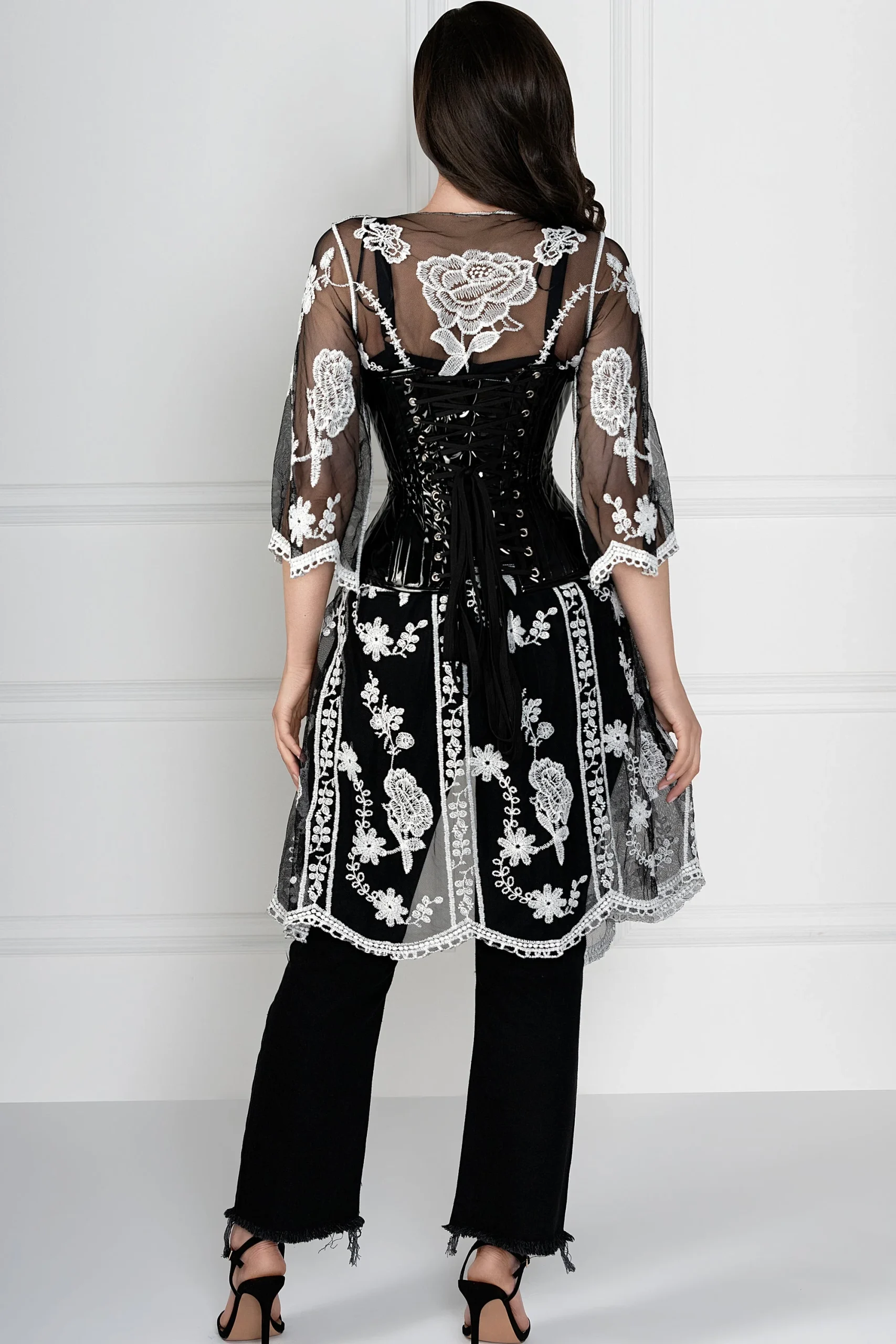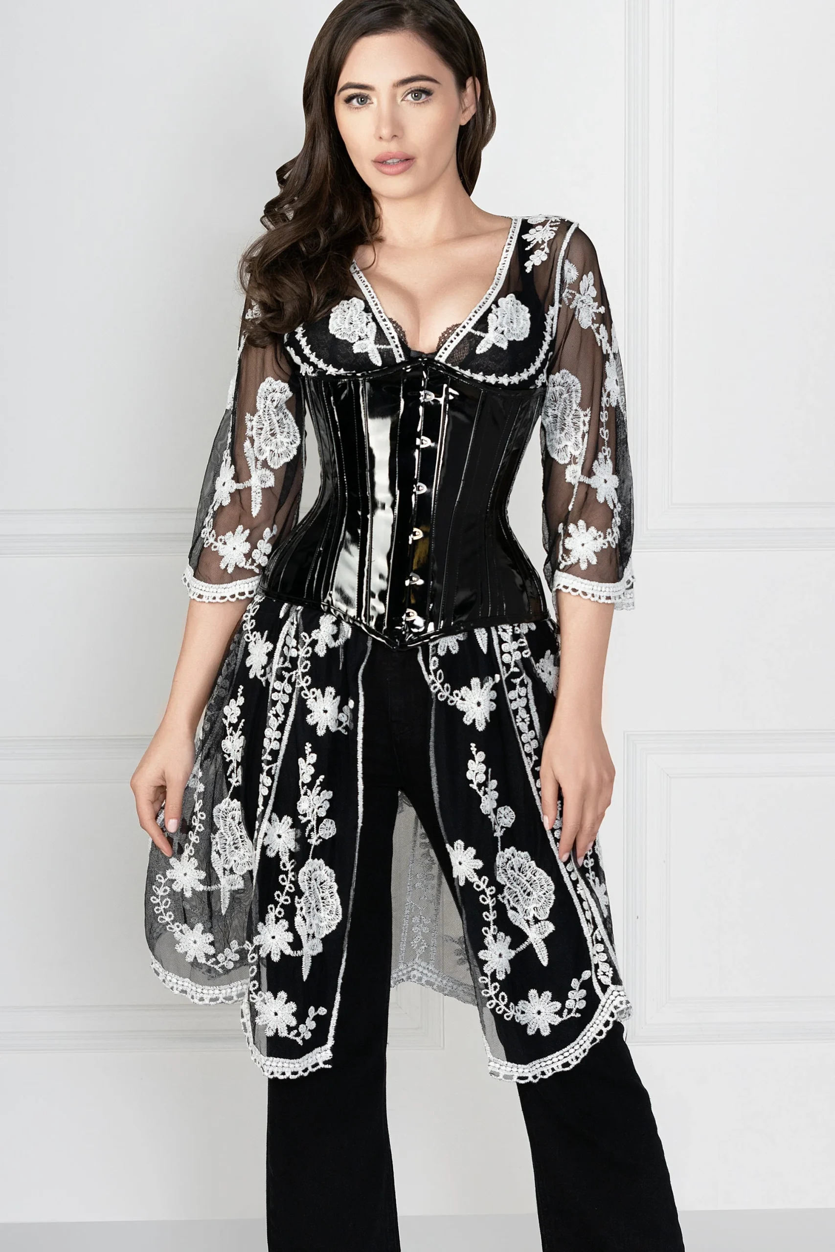 • Caractéristiques du corset : Lacets de cordon, Gores à la hanche, Busk en acier