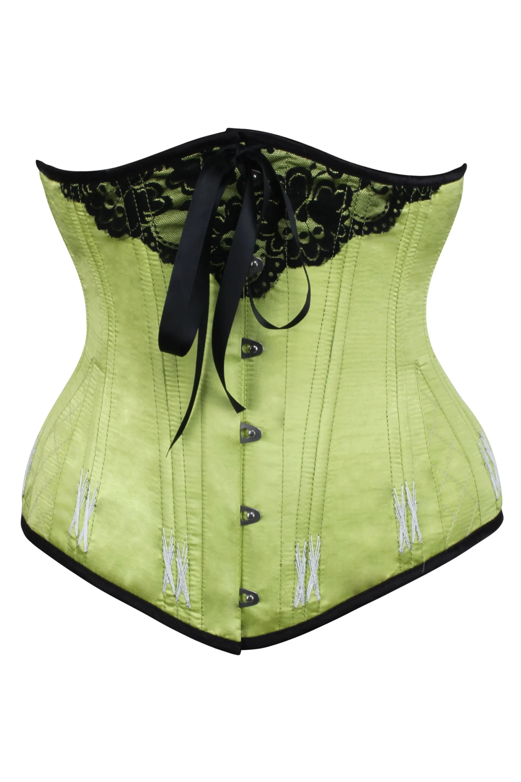 - Corset Features: Ribbon Lacing,Hip Gores,Steel Busk