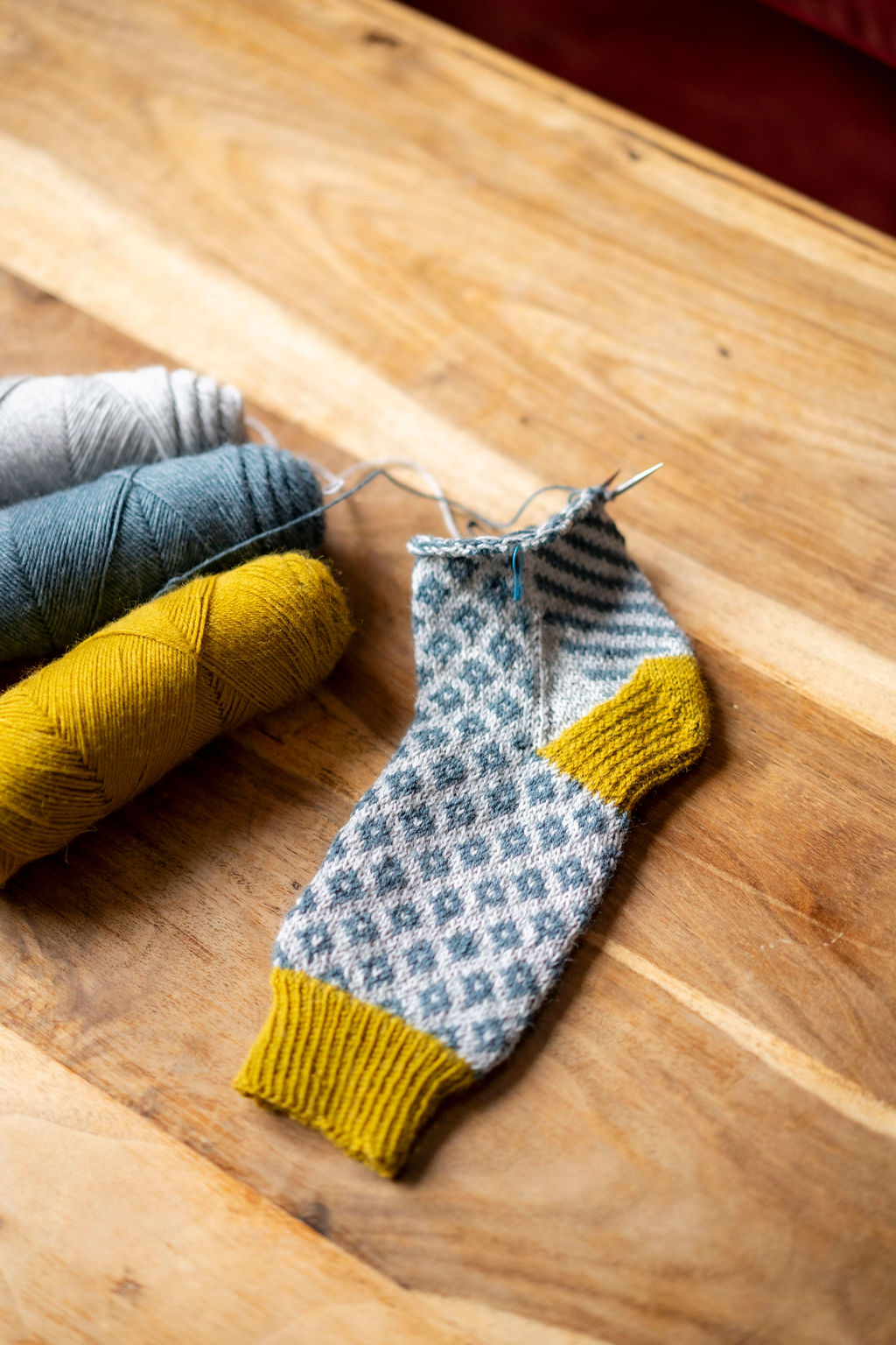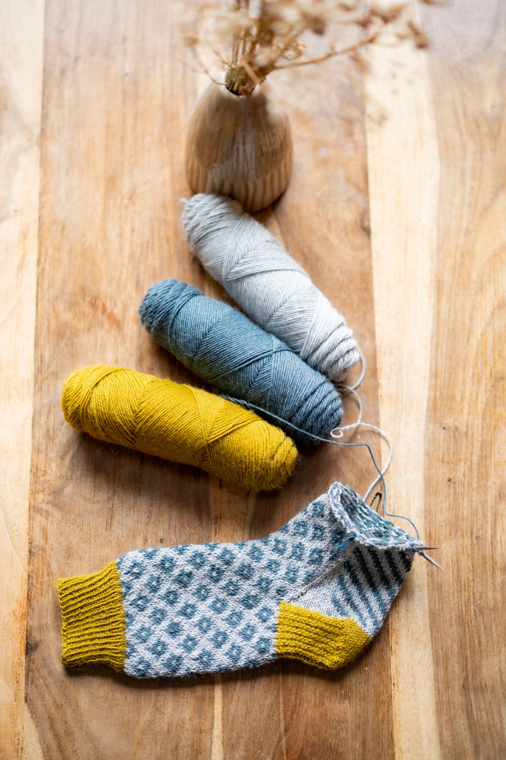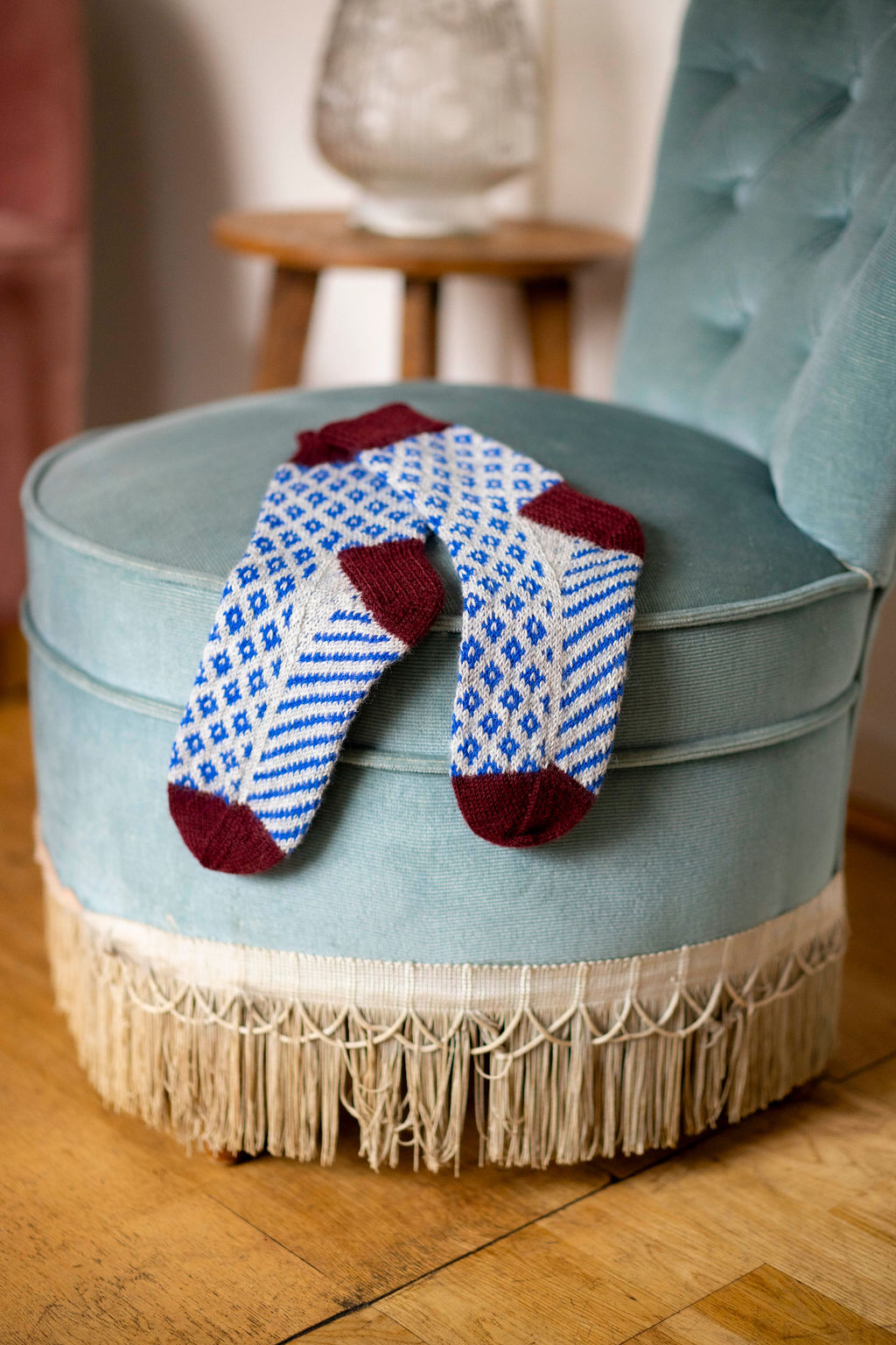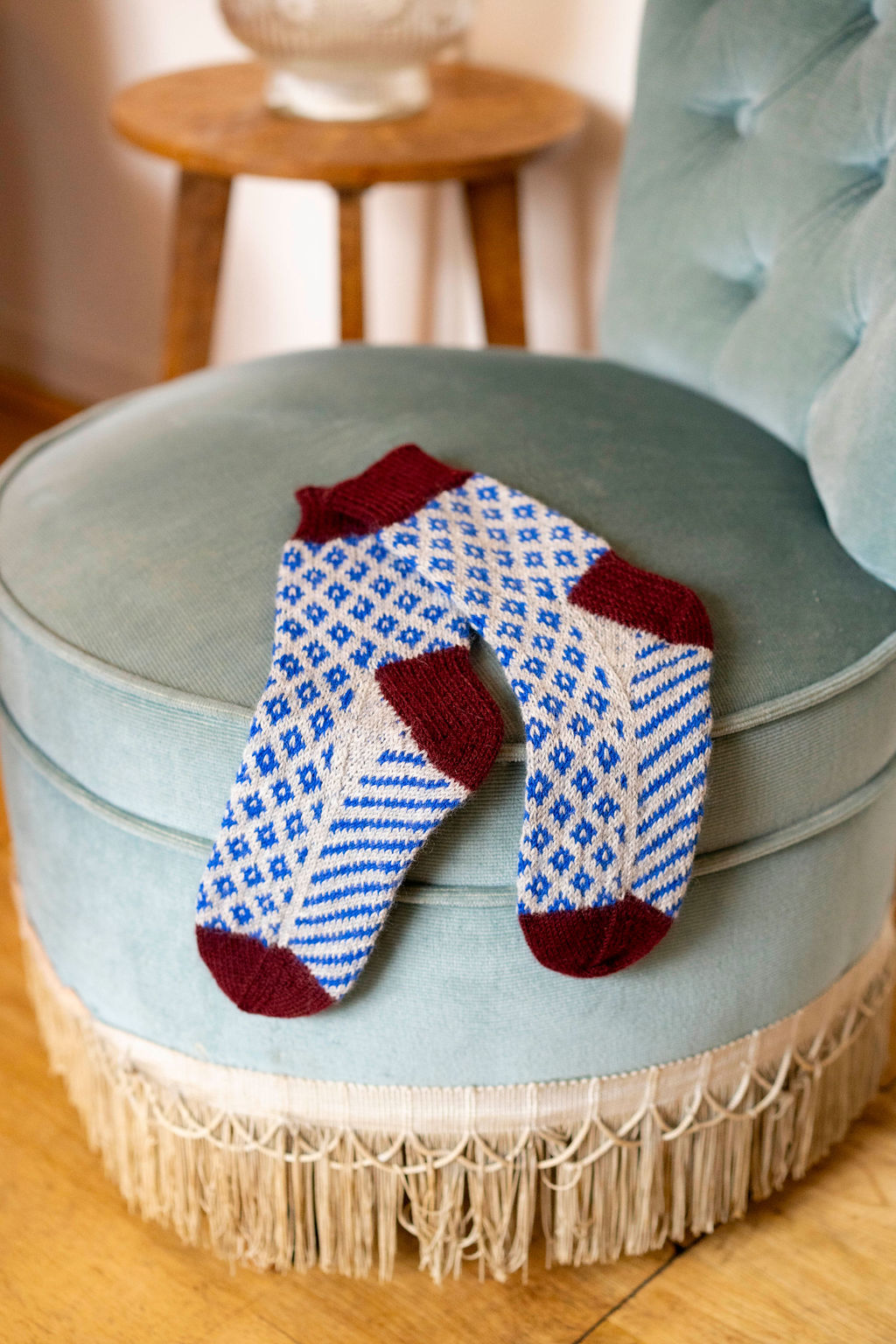 Les photos sont des illustrations des chaussettes que vous pourrez réaliser à condition d’avoir le tutoriel des chaussettes jacquard Suzette(clic!)