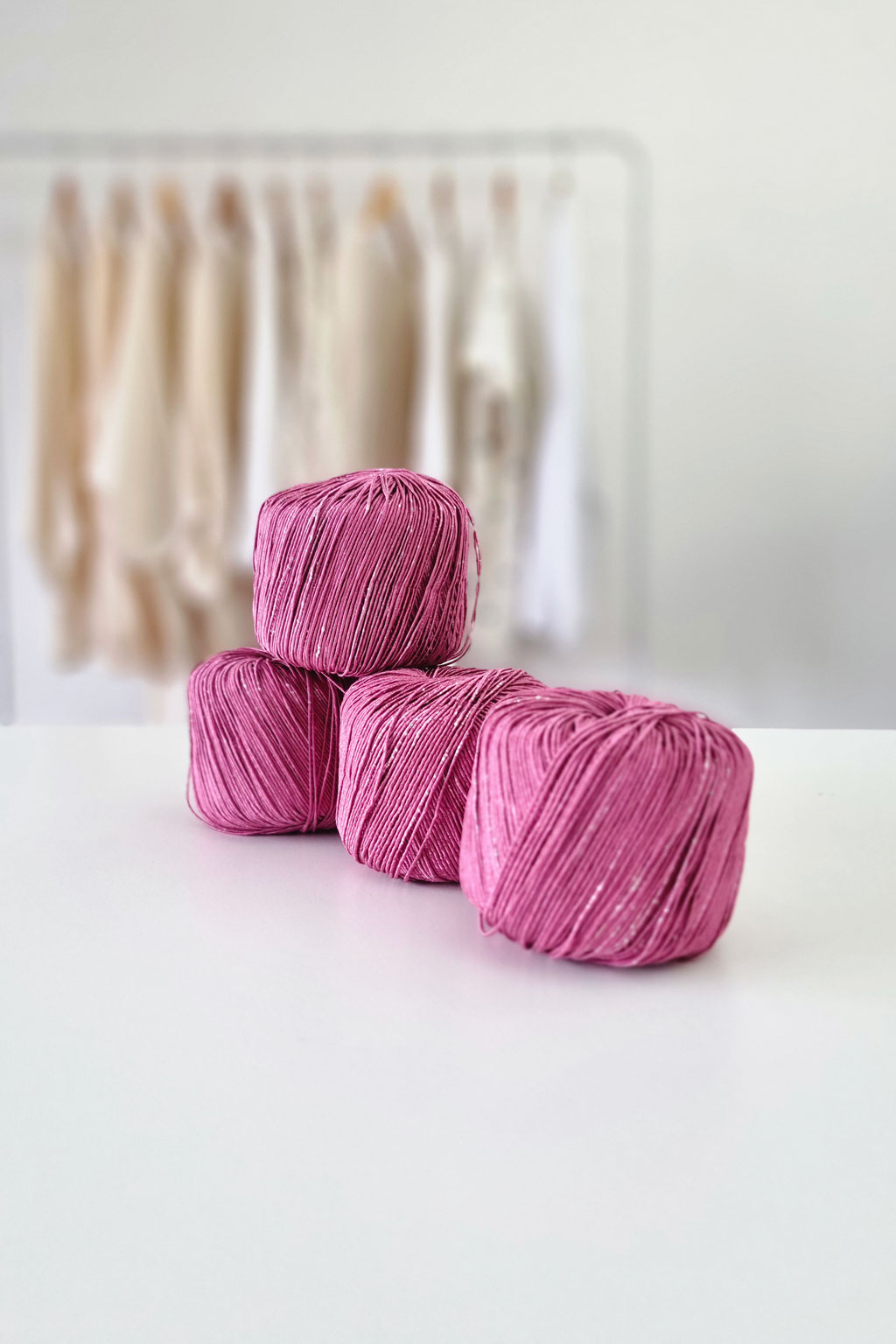 - Un fil raffiné qui mélange coton et lin (faisant un peu penser aux fils utilisés pour la passementerie), pour un rendu précieux et satiné
