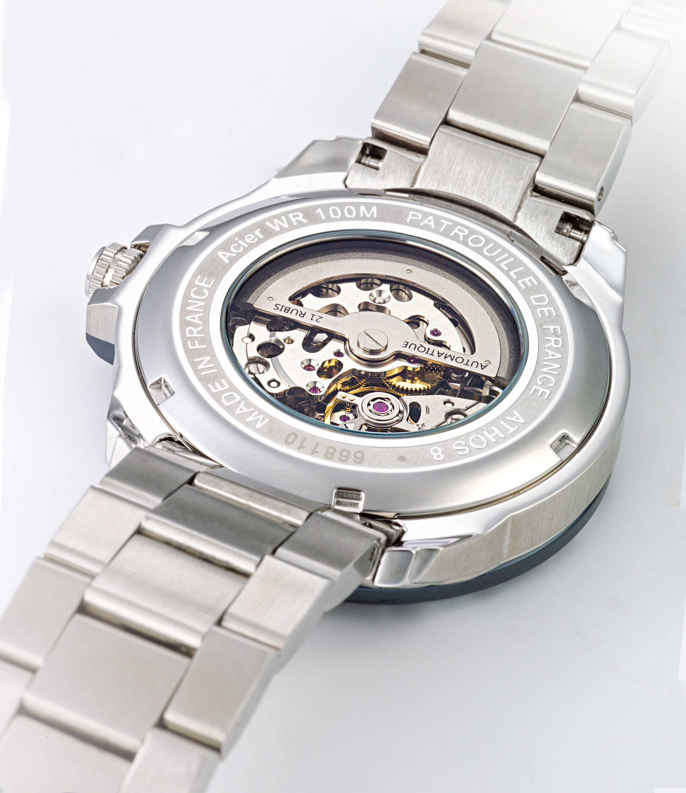 La découpe d’un Alphat Jet sur le cadran de notre Montre Automatique Acier Cadran Bleu A8-100ED-668110 fait écho aux avions profilés de la PAF. Cette montre de haute voltige laisse entrevoir son mouvement automatique 21 rubis. Un mécanisme automatique pour avoir toujours un coup d’avance.[/vc_column_text][vc_video link= »https://youtube.com/shorts/cUl7iGLs-Tk » el_aspect= »43″ align= »center »][/vc_column][/vc_row][vc_row disable_element= »yes »][vc_column][vc_text_separator title= »MOUVEMENT AUTOMATIQUE COEUR BATTANT 21 RUBIS »][/vc_column][/vc_row][vc_row content_placement= »middle » disable_element= »yes »][vc_column width= »1/2″][vc_single_image image= »5635″ img_size= »full » alignment= »center »][/vc_column][vc_column width= »1/2″][vc_column_text]