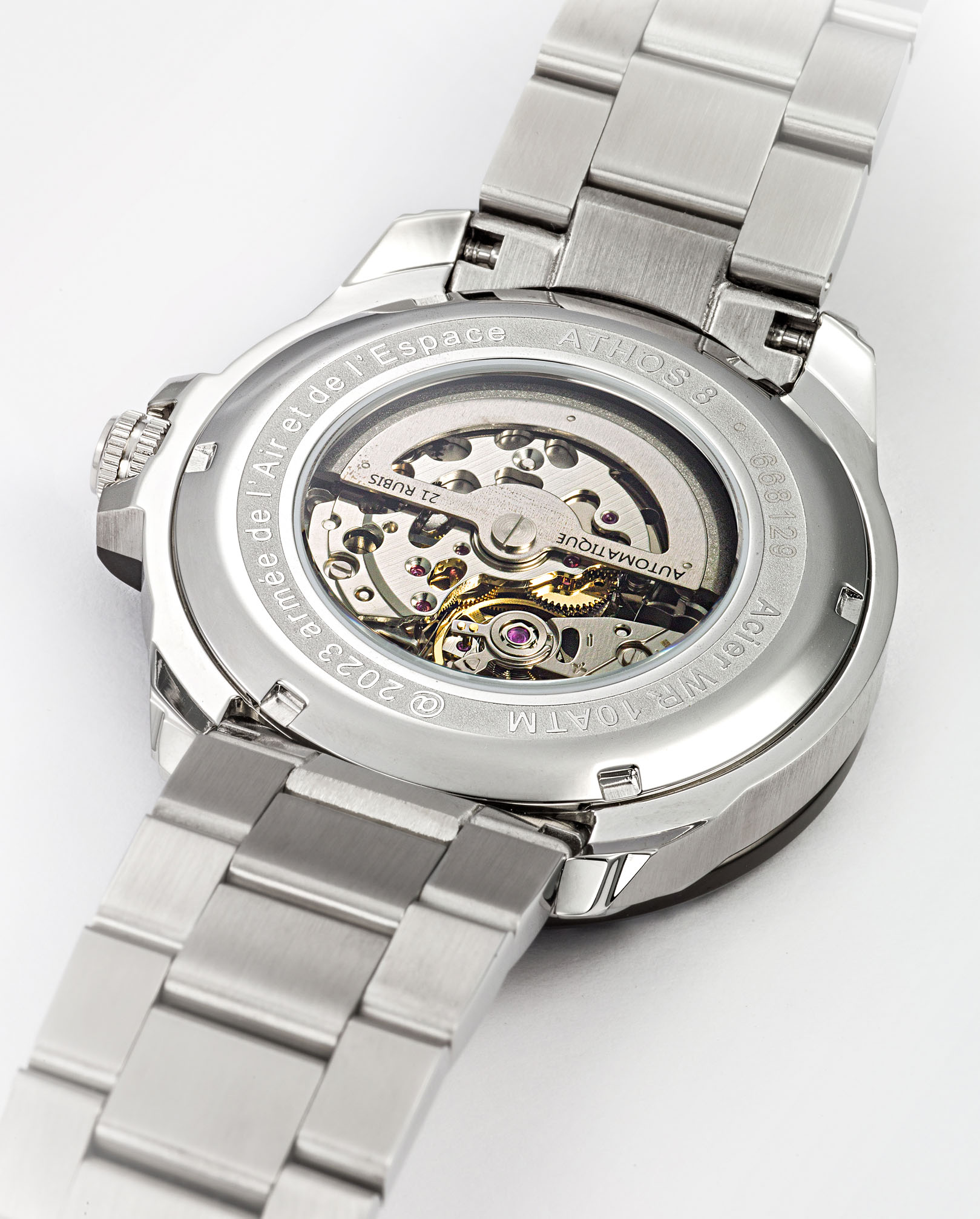La découpe d’un Alphat Jet sur le cadran de notre Montre Automatique Acier Cadran Noir A8-100ED-668129 fait écho aux avions profilés de la PAF. Cette montre de haute voltige laisse entrevoir son mouvement automatique 21 rubis. Un mécanisme automatique pour avoir toujours un coup d’avance.[/vc_column_text][/vc_column][/vc_row][vc_row disable_element= »yes »][vc_column][vc_text_separator title= »MOUVEMENT AUTOMATIQUE COEUR BATTANT 21 RUBIS »][/vc_column][/vc_row][vc_row content_placement= »middle » disable_element= »yes »][vc_column width= »1/2″][vc_single_image image= »5635″ img_size= »full » alignment= »center »][/vc_column][vc_column width= »1/2″][vc_column_text]