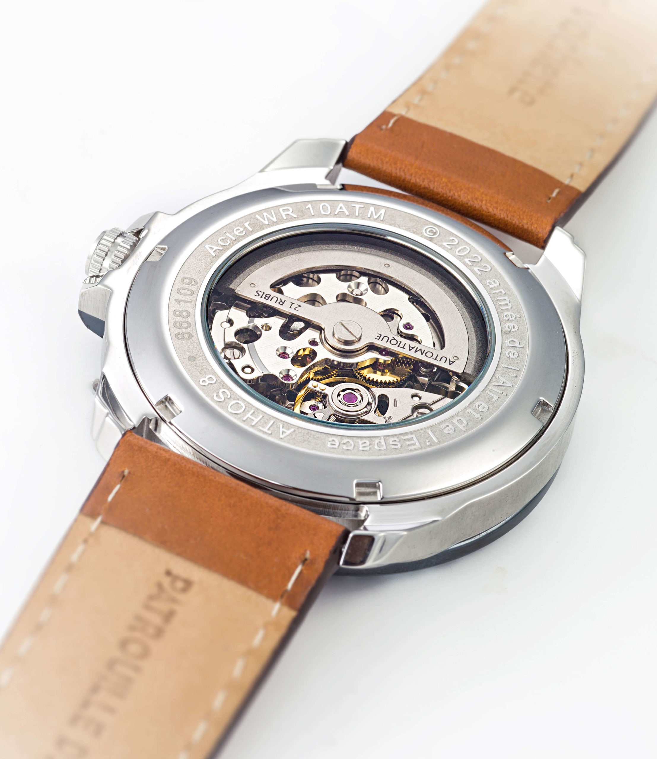 La découpe inversée d’un Alphat Jet sur le cadran de notre Montre Automatique Bleu Cuir marron A8-100ED-668109 fait écho aux avions profilés de la PAF. Cette montre de haute voltige laisse entrevoir son mouvement automatique 21 rubis. Un mécanisme automatique pour avoir toujours un coup d’avance.[/vc_column_text][/vc_column][/vc_row][vc_row disable_element= »yes »][vc_column][vc_text_separator title= »MOUVEMENT AUTOMATIQUE COEUR BATTANT 21 RUBIS »][/vc_column][/vc_row][vc_row content_placement= »middle » disable_element= »yes »][vc_column width= »1/2″][vc_single_image image= »5635″ img_size= »full » alignment= »center »][/vc_column][vc_column width= »1/2″][vc_column_text]