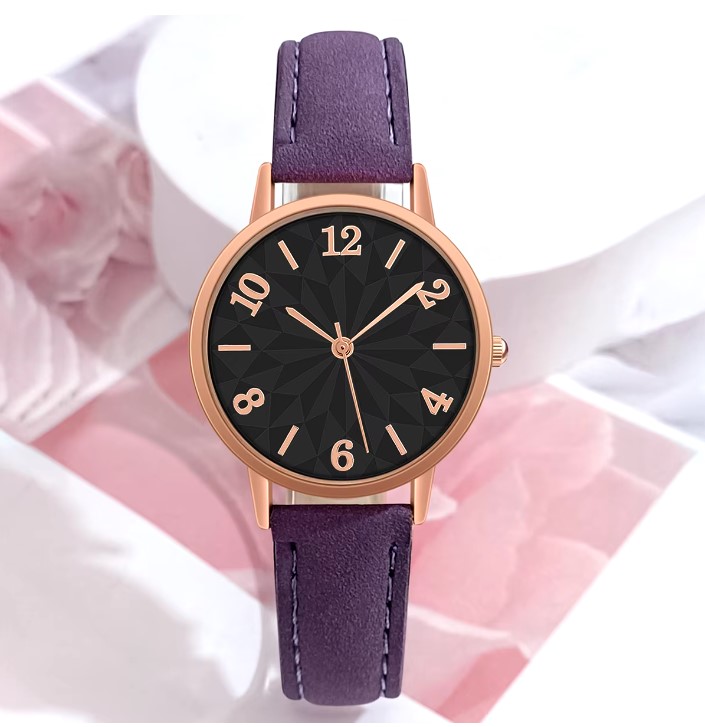 Cette montre à quartz pour femme allie élégance et originalité avec un design moderne et raffiné. Le cadran noir épuré apporte une touche sophistiquée, tandis que le bracelet en cuir mauve, à la fois doux et résistant, ajoute une note audacieuse et féminine. Ce contraste entre le noir classique et le mauve tendance en fait un accessoire qui se démarque, parfait pour toutes les femmes à la recherche d’un style affirmé et unique.