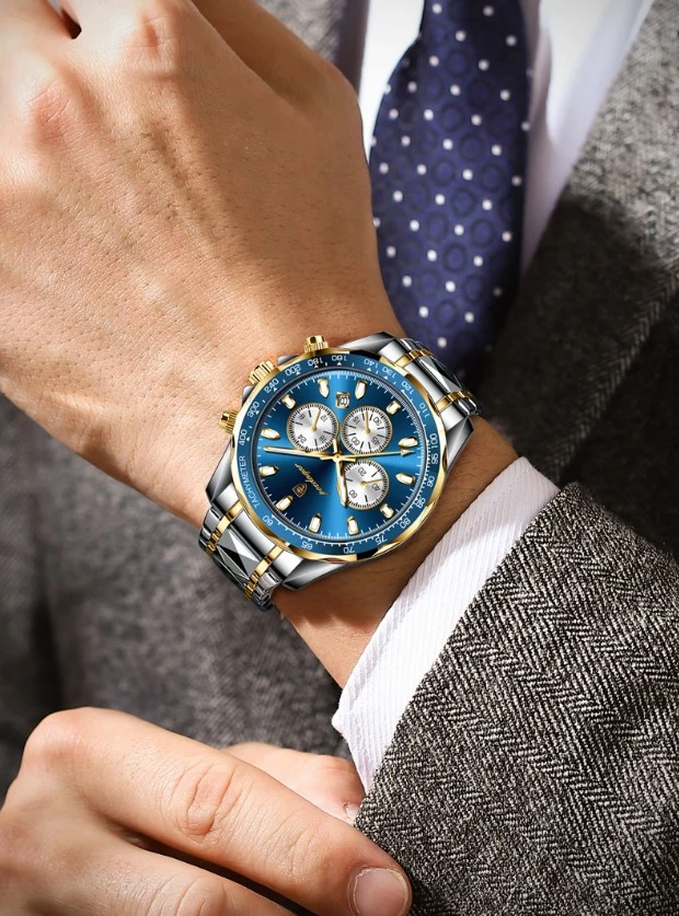 - Design luxueux et intemporel : Le boîtier et le bracelet en acier inoxydable confèrent à cette montre une allure élégante et durable. Le fini argenté ou doré ajoute une touche de sophistication qui s’adapte à toutes les tenues, que ce soit un costume ou un look décontracté.