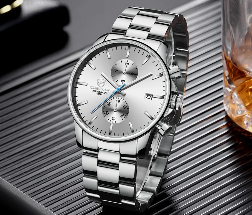 - Design multi-cadrans : Le cadran principal est complété par des sous-cadrans fonctionnels, vous offrant des informations supplémentaires comme la date, le chronomètre ou même un second fuseau horaire. Parfait pour l’homme d’affaires voyageur.