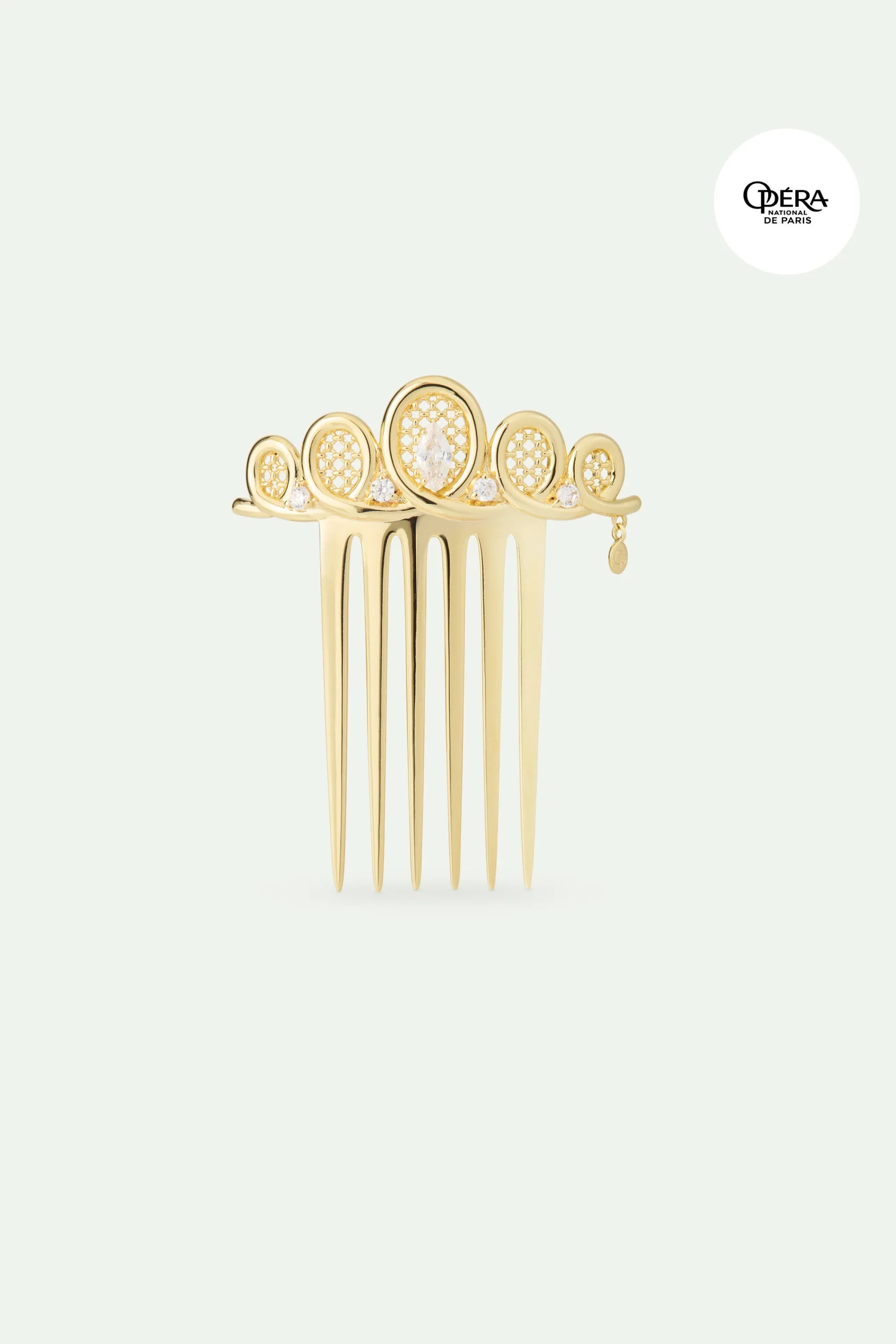 Les Néréides poursuit sa collaboration avec l’Opéra national de Paris avec des parures évoquant le faste des divinités antiques. À l’instar du flamboyant Palais Garnier où l’or et le marbre subliment la pierre, cette collection s’inspire des grands symboles de l’Opéra et de l’apparat lyrique.