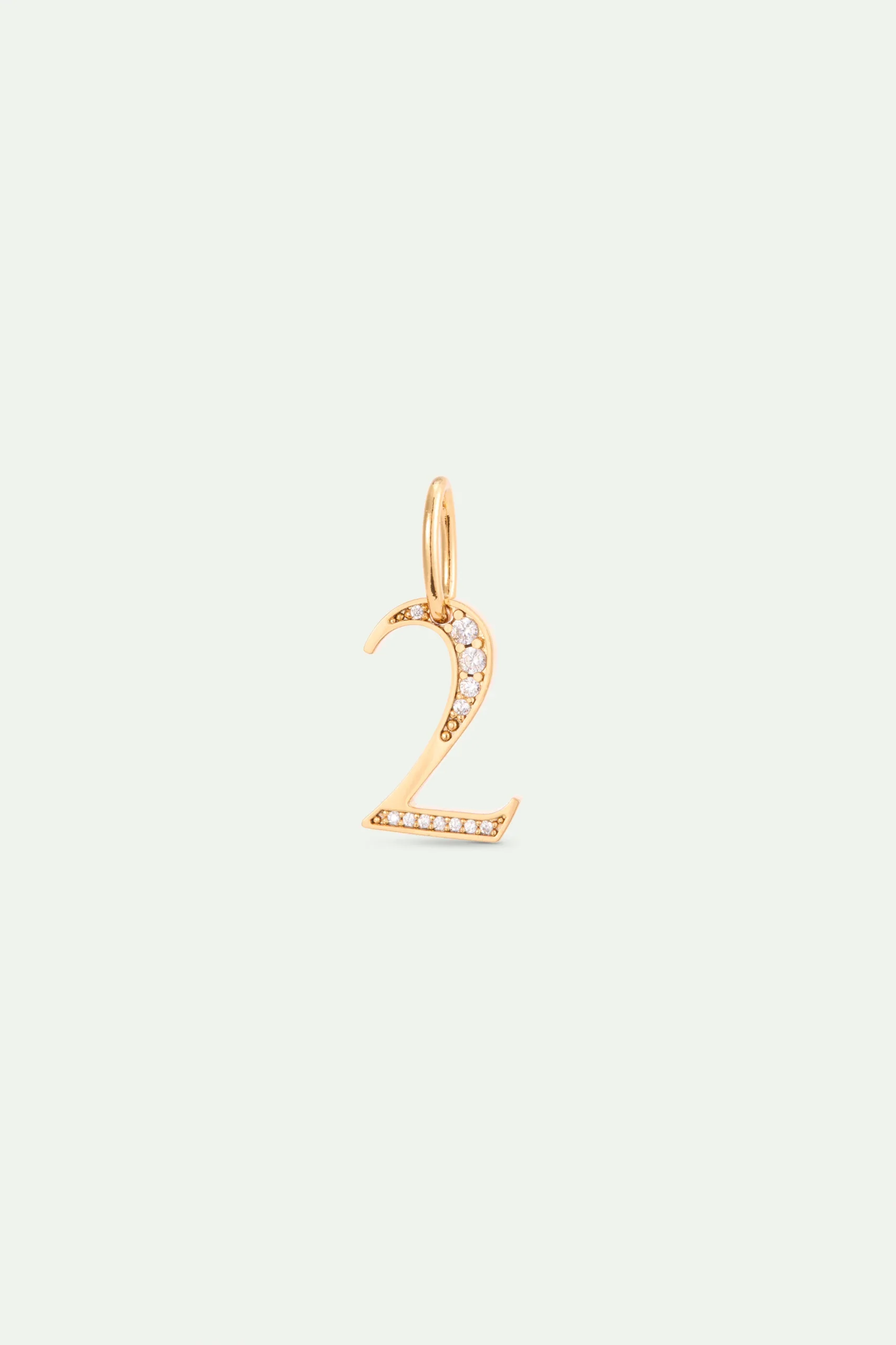 Pendentif chiffre 2 en laiton doré à l’or fin orné d’oxydes de zirconium.