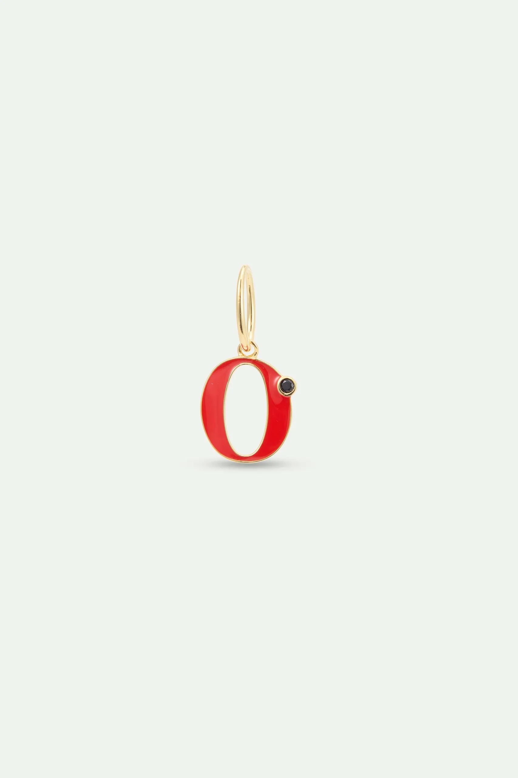 Pendentif lettre O rouge peinte à la main et ornée d’un oxyde de zirconium noir.