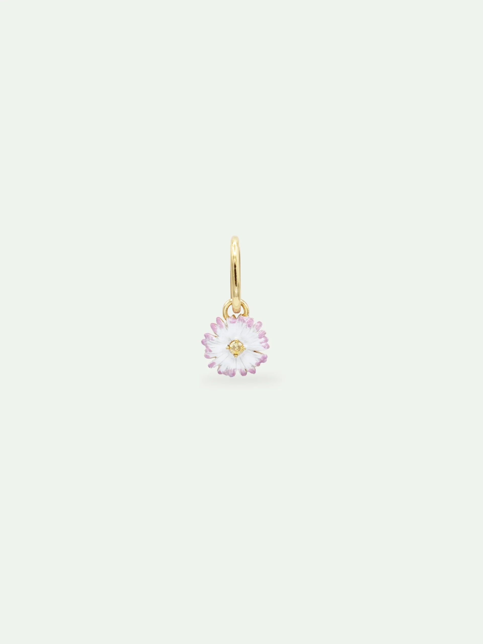 Pendentif petite fleur de Marguerite blanche en laiton doré à l’or fin, peint à la main, orné d’un oxyde de zirconium. Fleur du raffinement bucolique, symbole d’insouciance et d’espoir, à travers le jeu de l’effeuillage, on lui prête des capacités divinatoires pouvant percer le secret des coeurs. À accrocher, seul ou en accumulation, à l’un de nos supports vendus séparément. Créez un bijou unique et portez vos symboles comme des porte-bonheurs, pour une composition à votre image.