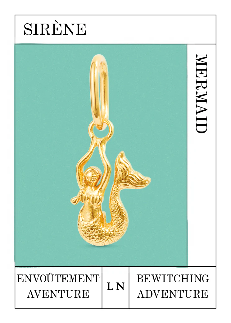 Pendentif Sirène en laiton doré à l’or fin. Séduisantes cantatrices chimériques des mers du folklore médiéval, les sirènes peuvent se montrer aussi féroces que sublimes.