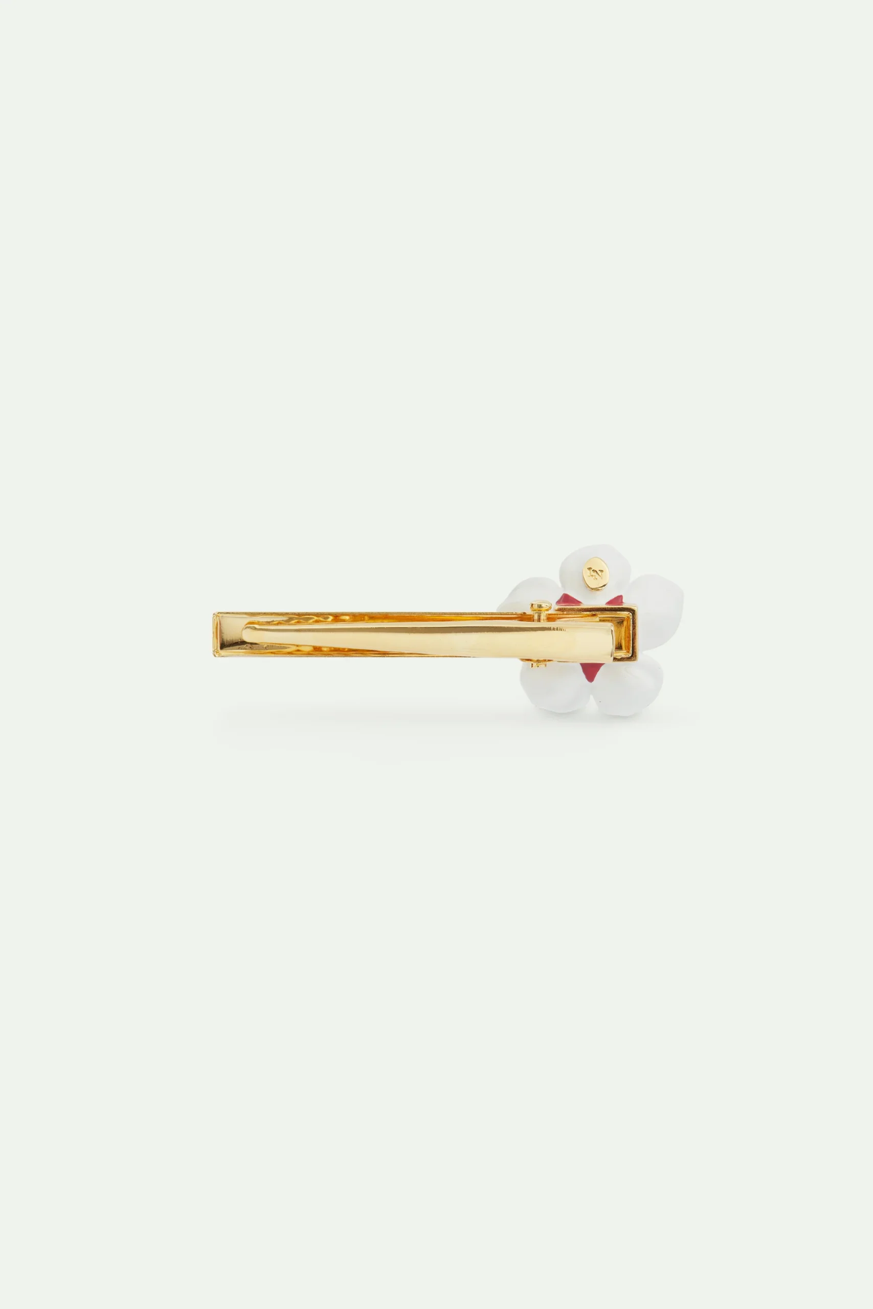 Petite pince à cheveux en laiton doré, fleur de cerisier sakura finement peinte à la main, ornée d’une pierre facettée en son centre. Parfaite pour ajouter un détail luxueux et raffiné à votre coiffure. Hommage à la tradition japonaise, la collection Hanami vous transporte à travers les champs de cerisiers à l’arrivée du printemps et vous invite à vous émerveiller devant la nature en éveil.