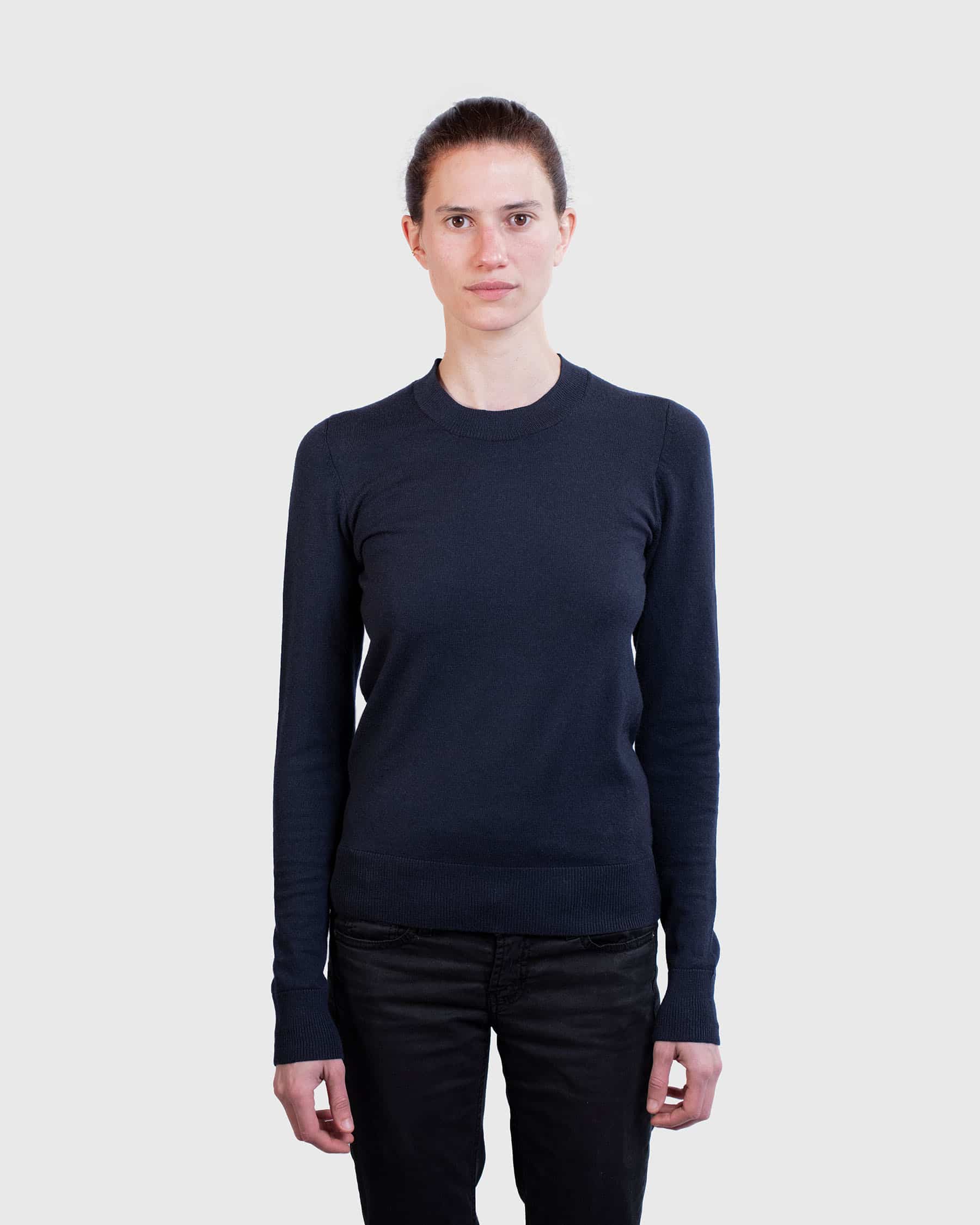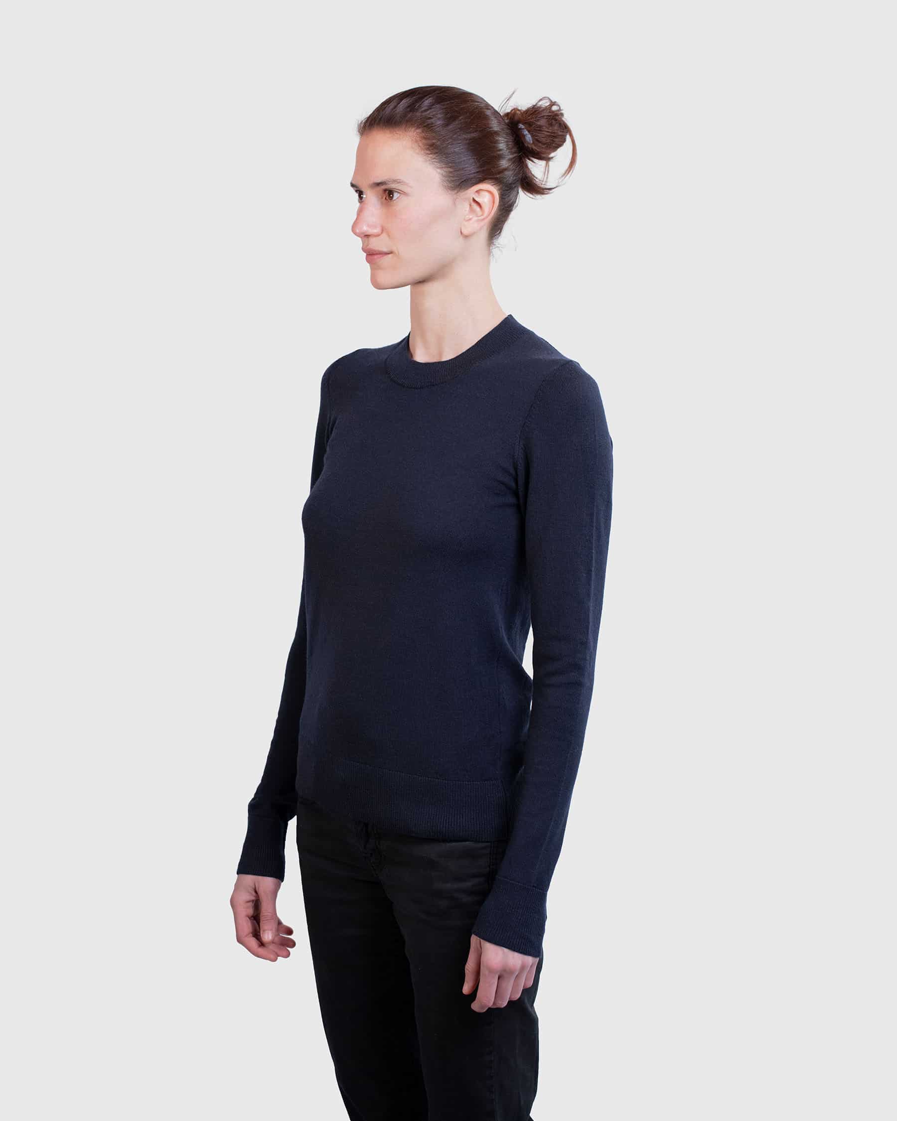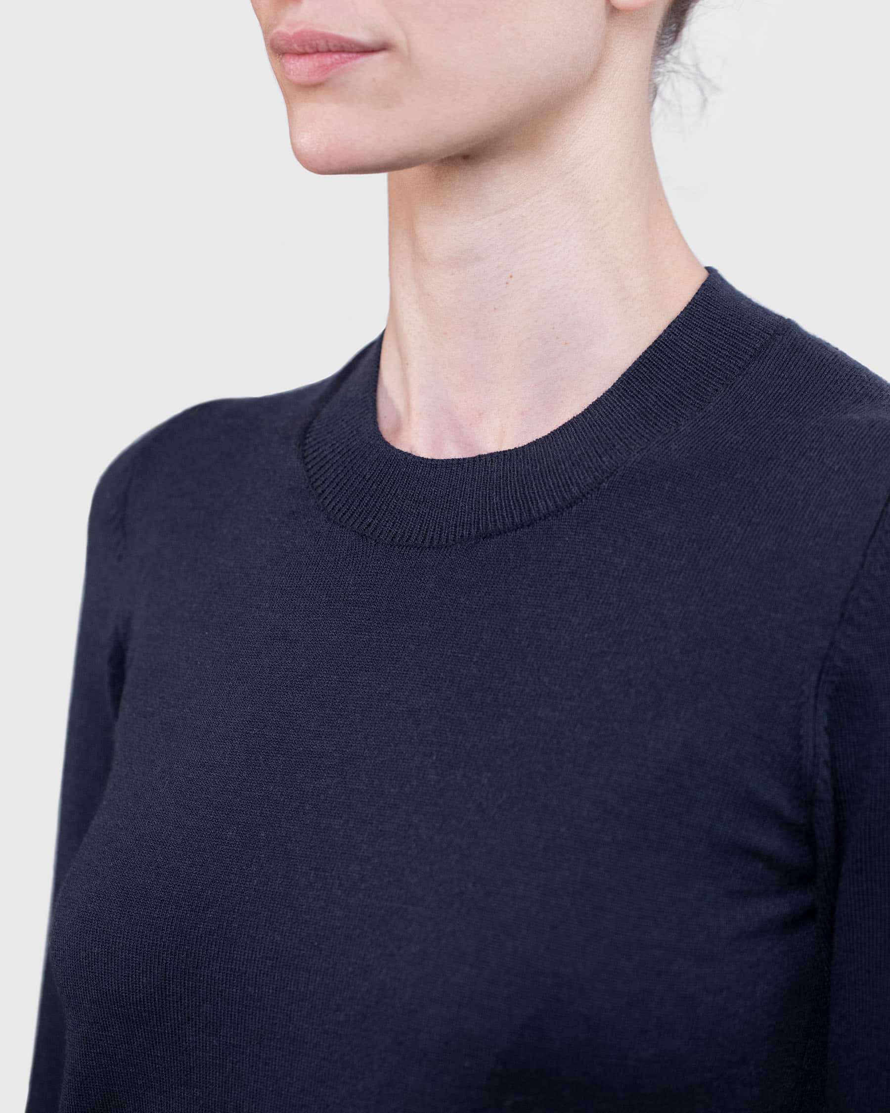 Tricoté dans un point de jersey aérien à partir d’une laine ultra-fine, ce pull à col rond est adapté comme vêtement de toutes les saisons.