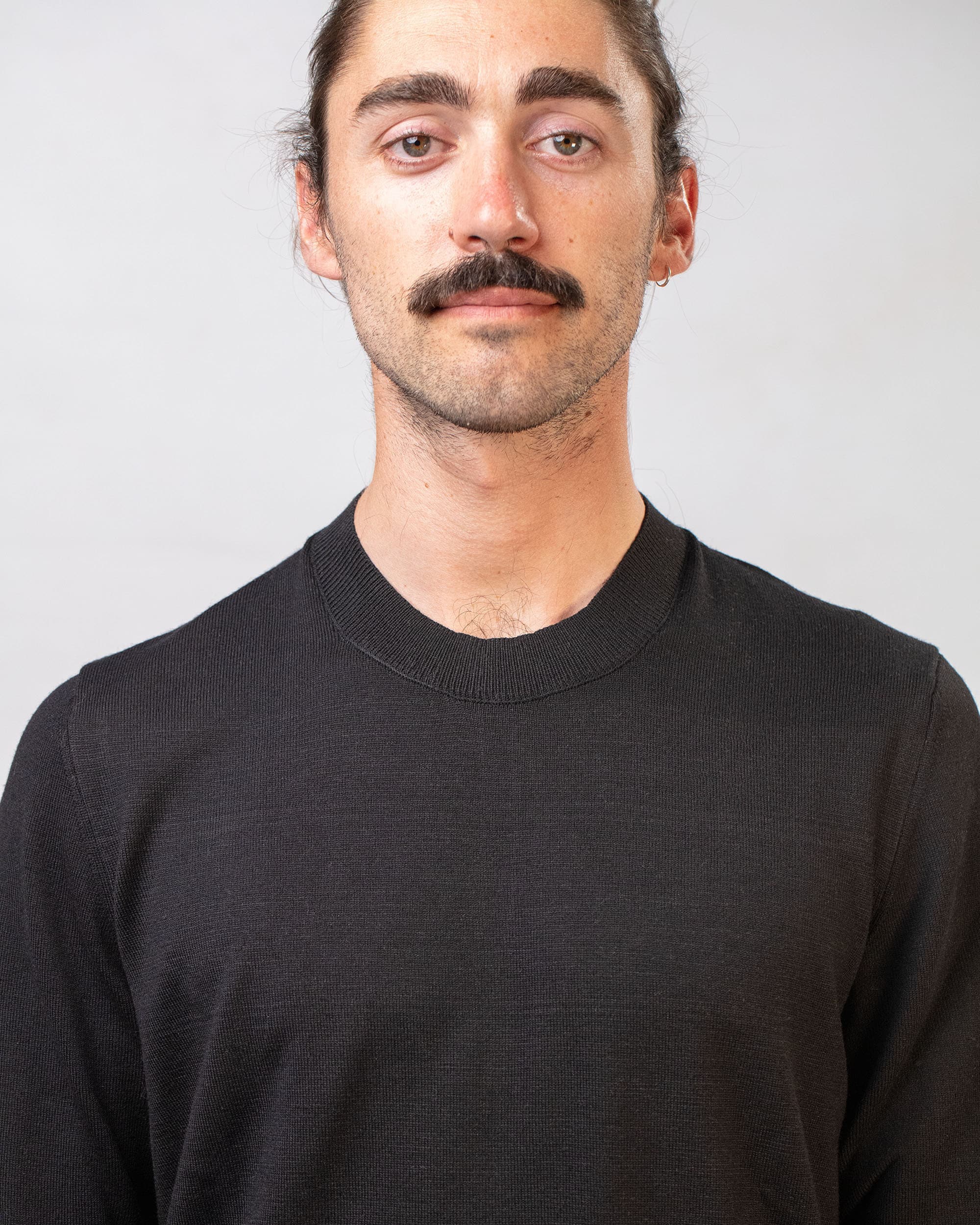 Tricoté dans un point de jersey aérien à partir d’une laine ultra-fine, ce pull à col rond est adapté comme vêtement de toutes les saisons.