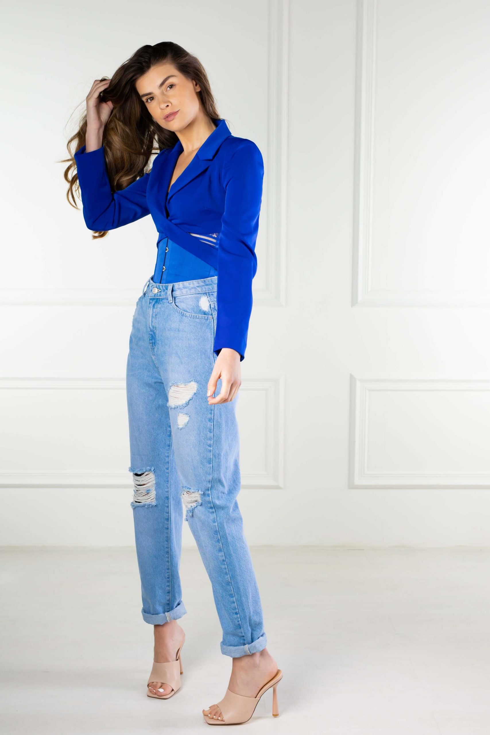 Serre-taille Waist Training bleu cobalt en satin