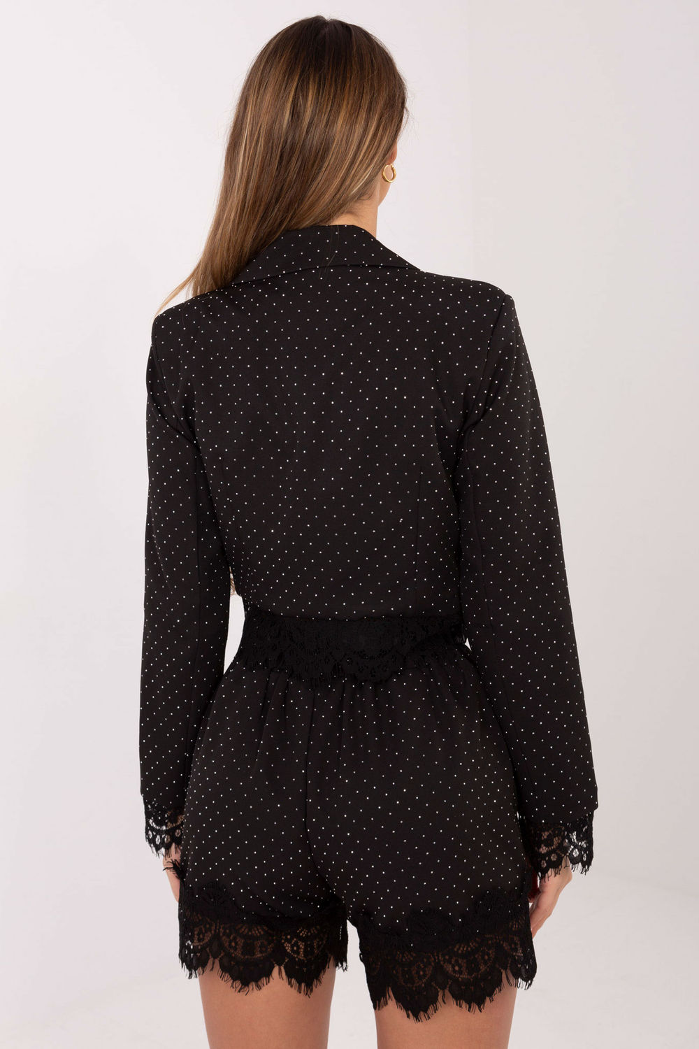 Les élégants shorts en tissu pour femmes sont une proposition stylée pour les femmes qui aiment combiner confort et détails voyants et élégants. Parfaits pour une fête ou des occasions spéciales, ils se marieront également parfaitement avec des tenues estivales élégantes. Le modèle est fabriqué à partir d’un mélange de polyester et de viscose, ce qui rend le tissu léger, aéré et s’ajuste parfaitement à la silhouette. La taille haute met en valeur la taille et allonge visuellement les jambes, tandis que les larges jambes ajoutent de l’élégance et de la liberté de mouvement. Pour plus de confort, une bande élastique a été cousue à l’arrière de la taille, assurant un ajustement parfait sans compression. Les shorts n’ont pas de fermeture traditionnelle, mais sont munis d’une ceinture à boucle, à la fois pratique et décorative. Les poches latérales ajoutent de la fonctionnalité et soulignent le caractère élégant de la coupe. Le look exceptionnel du modèle est renforcé par les clous placés sur le tissu, qui ajoutent une touche moderne et festive. Le bas des jambes est orné d’une dentelle subtile, apportant une finition féminine et spectaculaire à l’ensemble. Ces shorts sont le choix idéal pour les femmes qui veulent se démarquer par leur élégance dans une forme rafraîchie et moderne.