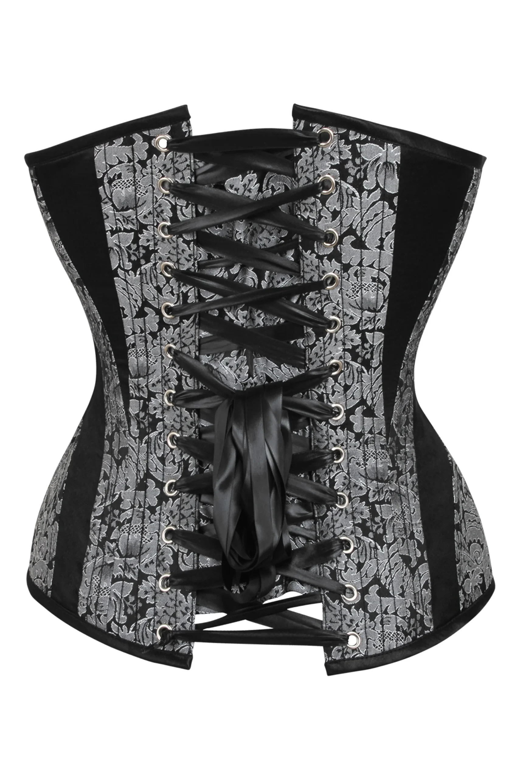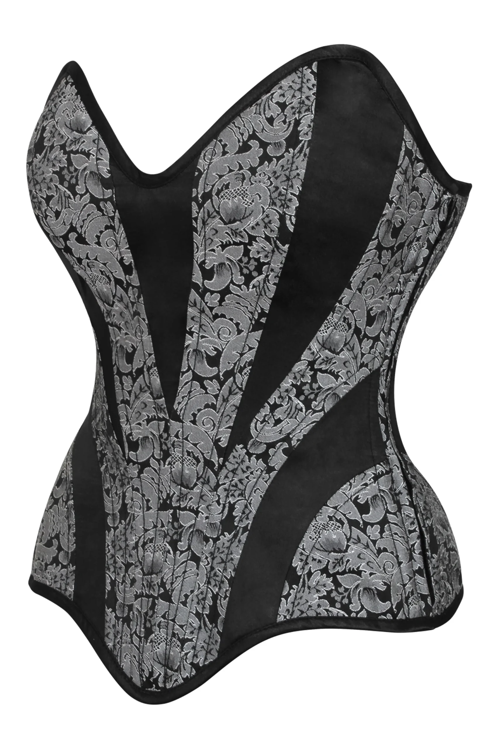 For timeless elegance and sophistication, get one of our stunning brocade overbust corsets. This fashionable corset is crafted from a luxurious silver and black brocade fabric and features an eye-catching side zip for an extra touch of glamour. Stay comfortable even after hours of wear with the flexible boning construction that offers superb support for your figure, while its fully adjustable lacing lets you achieve the perfect look every time. Get ready to make a statement with our Brocade Overbust Corset!