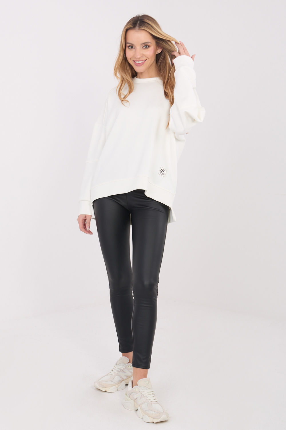 Le pull casual pour femme est une proposition confortable et élégante pour tous les jours. Fabriqué en viscose douce au toucher avec une touche d’élasthanne, il offre un confort de port, une élasticité et un bon ajustement à la silhouette. Le motif lisse souligne son caractère universel et fait que le pull se marie parfaitement avec de nombreux éléments de la garde-robe. La longueur standard avec un dos légèrement allongé lui donne un aspect moderne et affine subtilement la silhouette. Les manches longues et l’encolure ronde garantissent confort et liberté de mouvement. Modèle sans fermeture, agrémenté d’un petit patch en bas à gauche, qui apporte une touche délicate et à la mode.