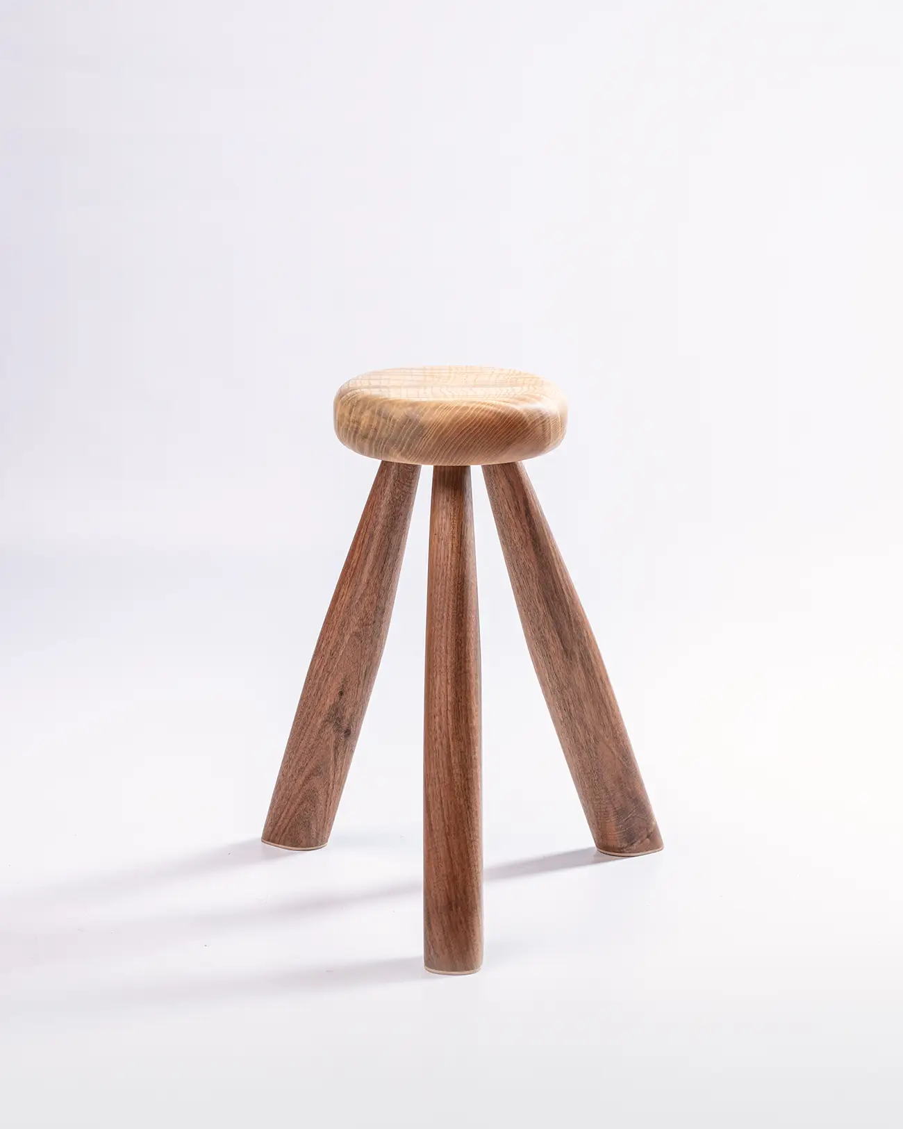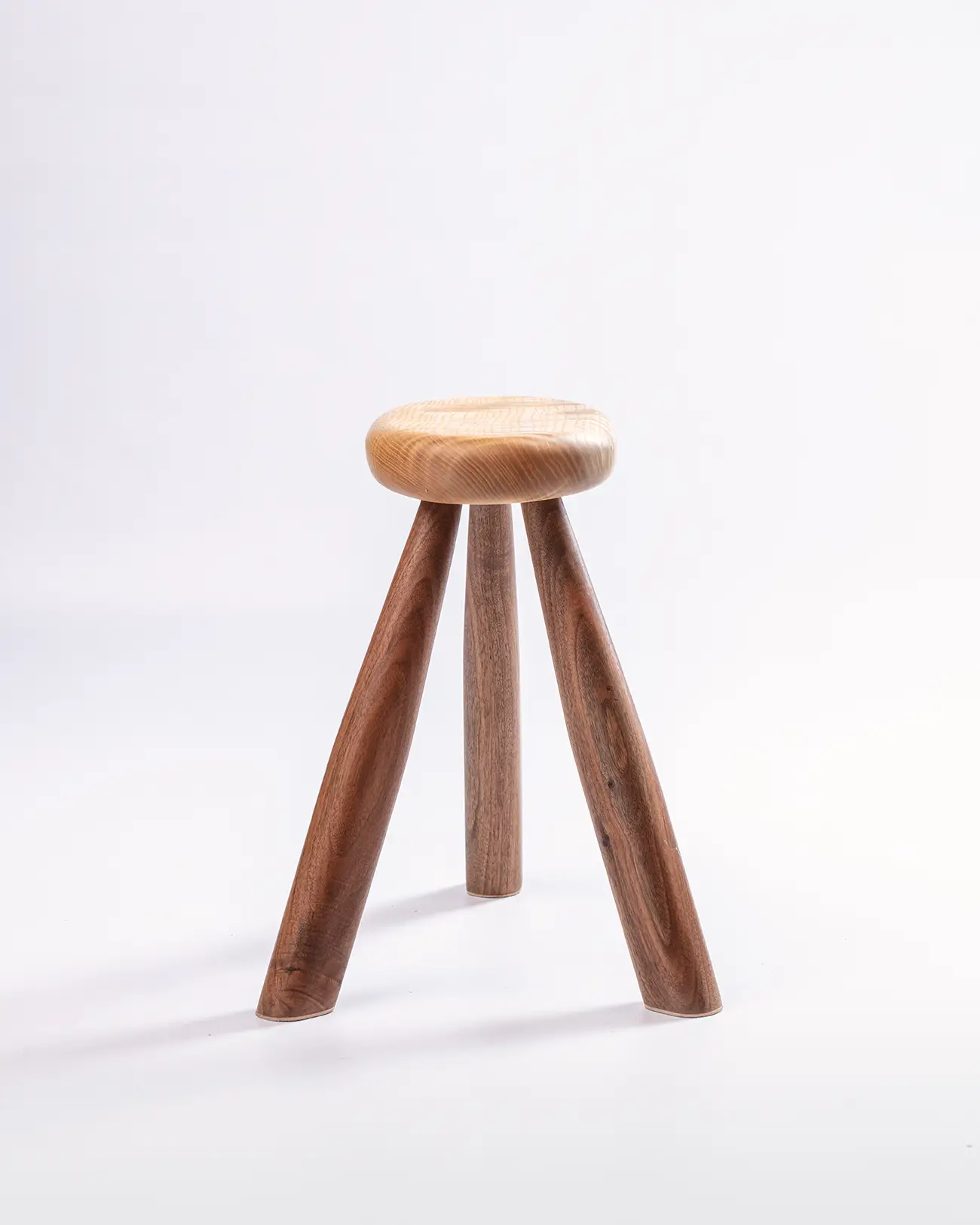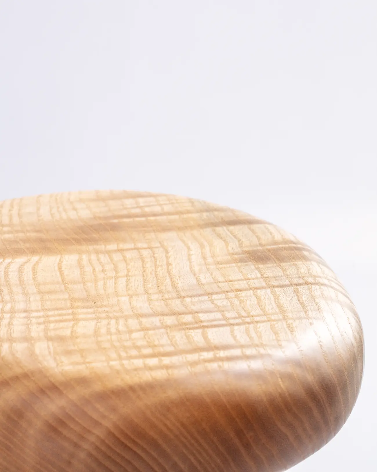 Avec une silhouette aérienne, il s’élance avec grâce sur des pieds fins en noyer. Son assise ovale en frêne ondé, aux reflets changeants, apporte du contraste, de l’expression et de l’équilibre à cette pièce.